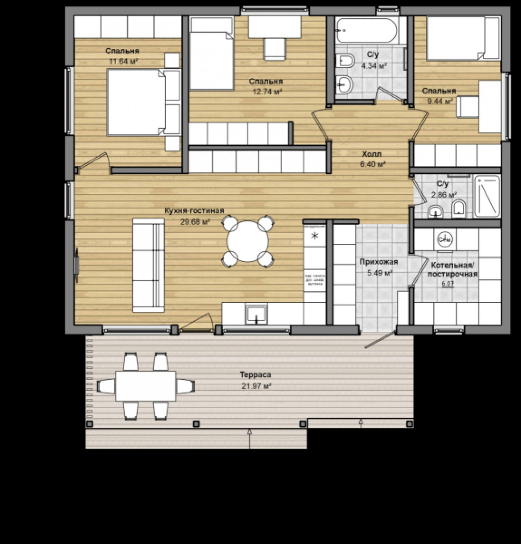 - Area size 90 m2