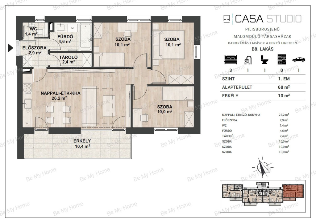 - Area size 68 m2