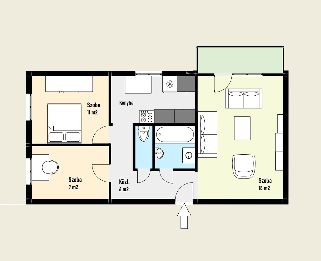 - Szobaszám 1 + 2 half
