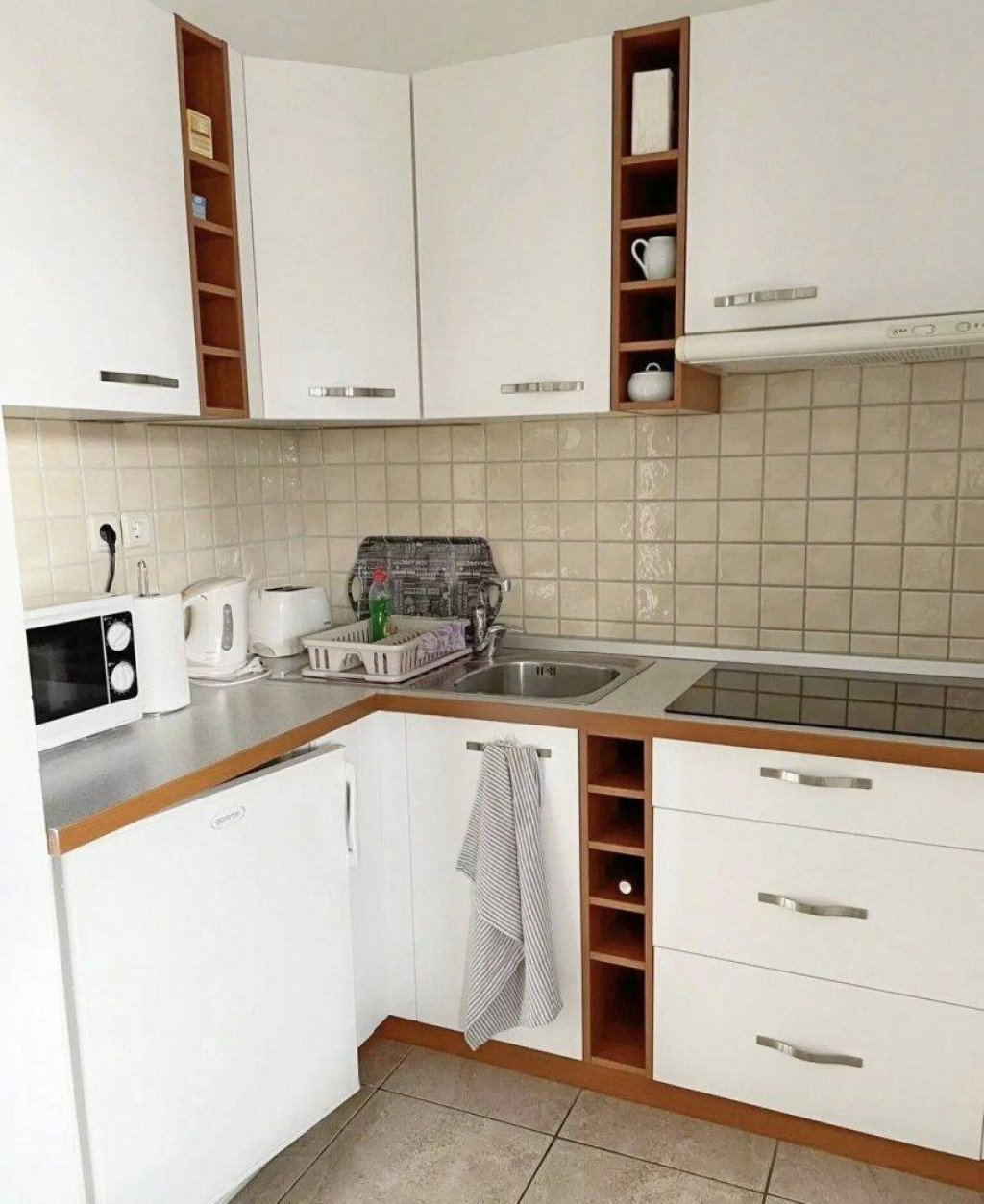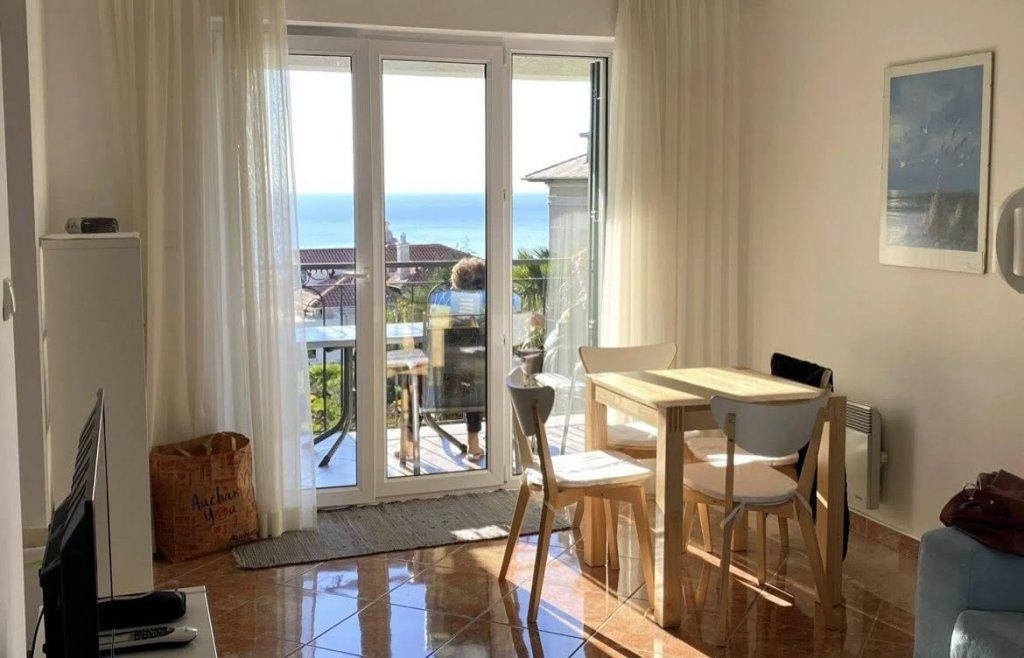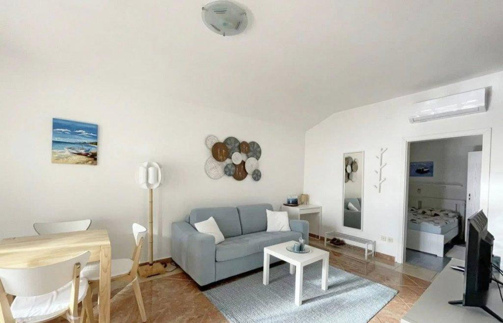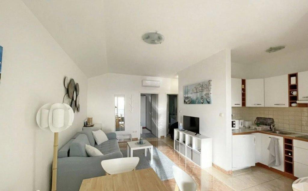 A lakás jól átgondolt elosztású: egy hálószobából és nappaliból áll, külön WC-vel, valamint egy tengerre néző panorámás terasszal rendelkezik. A tégla építésű ingatlan kellemes lakóérzetet biztosít, míg a praktikus kialakítás maximálisan kihasználja a rendelkezésre álló teret.