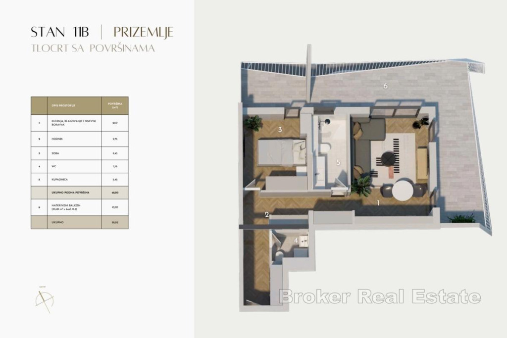 - Alapterület 58 m2