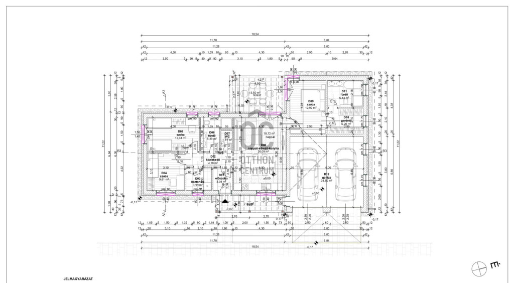 * Amerikai konyhás nappali étkezővel, 3 szoba, 2 fürdőszoba + wc, külön illemhelység, gardrób, terasz + 2 beállásos garázs