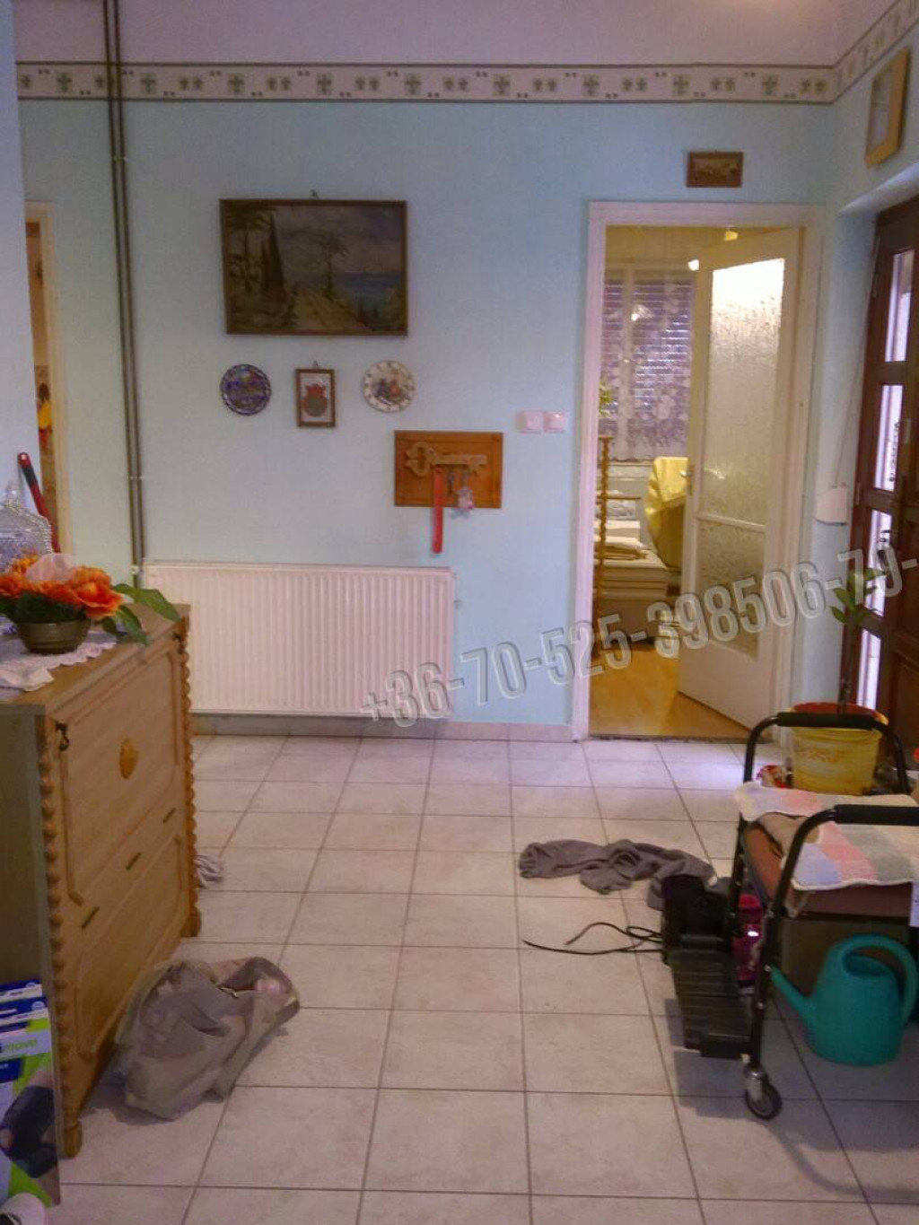 A belső burkolatok: festett fal, csempe, járólap, laminált padló. A bejárati ajtó tömör fa, az ablakok részben műanyagra cseréltek, redőnnyel, szúnyoghálóval felszereltek.