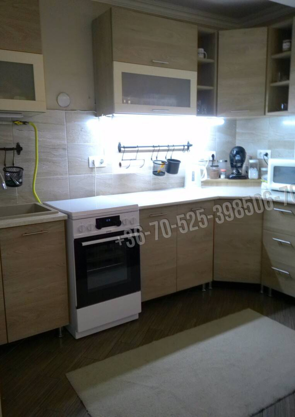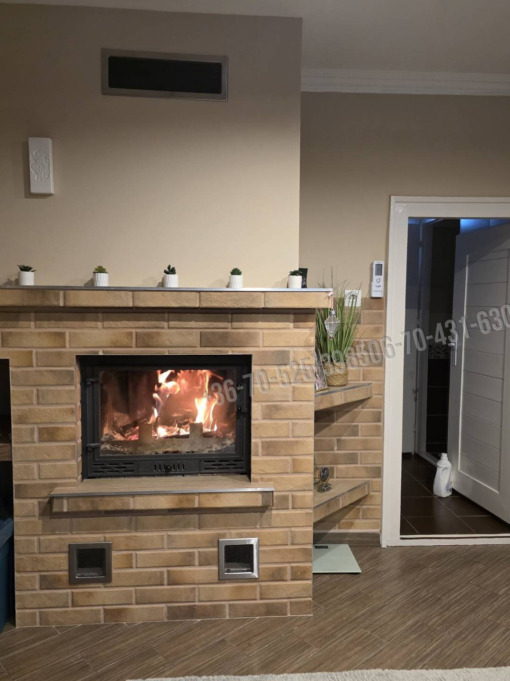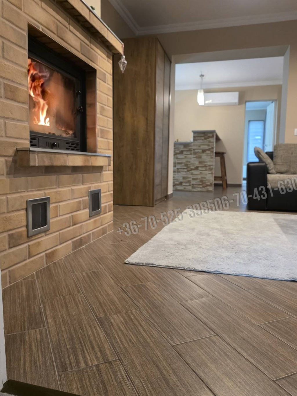 A belső burkolatok: igényes szép járólapok, díszburkolat, csempe , laminált padló és festett fal, dobozolt spot világítással.