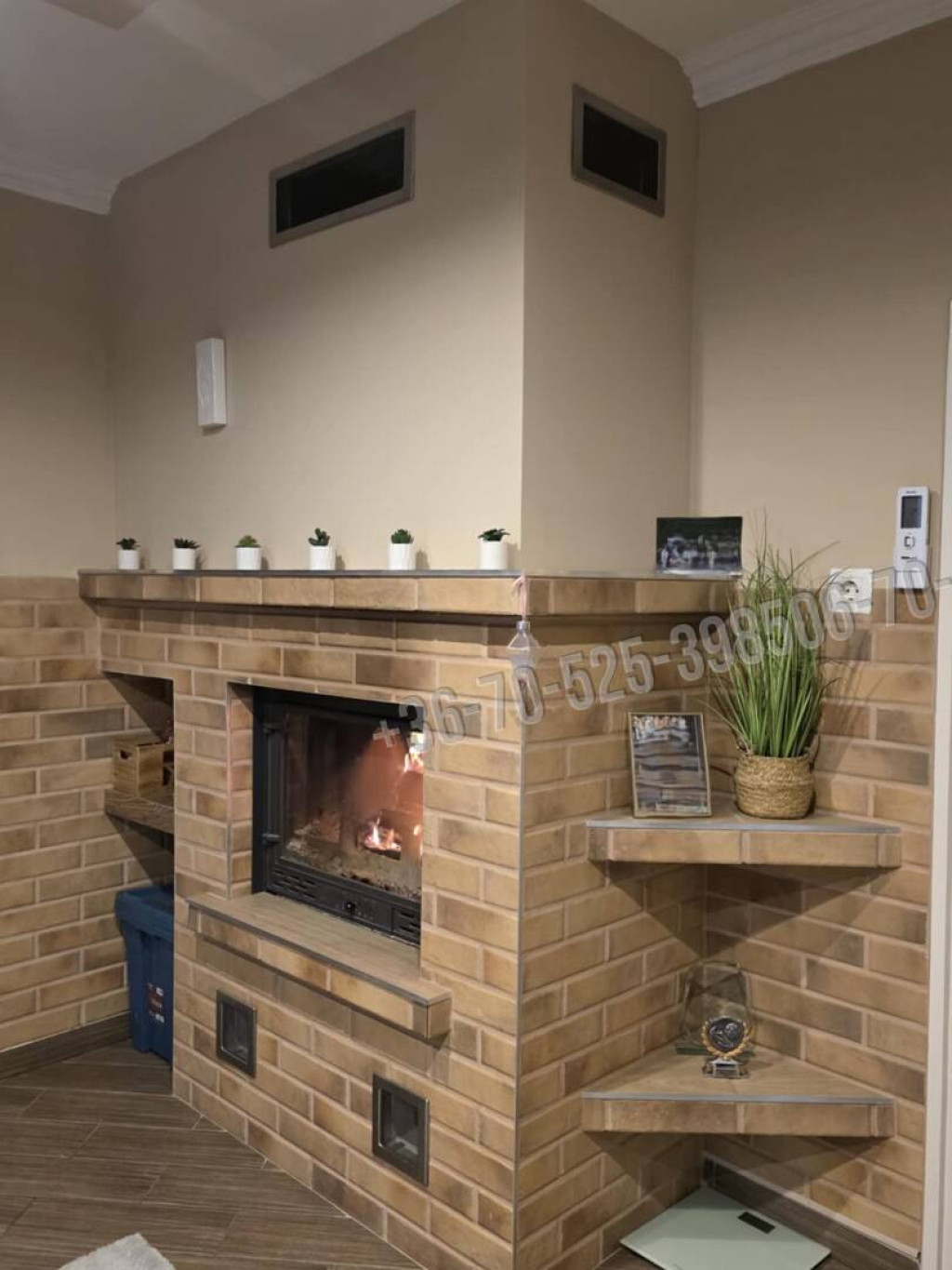 A belső térben: 3 hálószoba, tágas világos nappali épített kandallóval , amerikai konyhás étkező, tusolós fürdőszoba, wc került kialakításra.