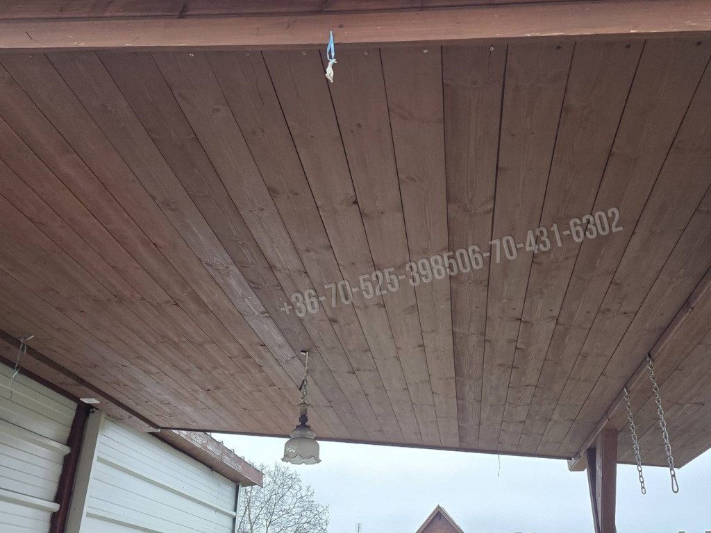 A külső homlokzat 10 cm. hungarocell, dryvit szigetelt, nemesvakolattal színezett, lambériázott dobozolt ereszalj.