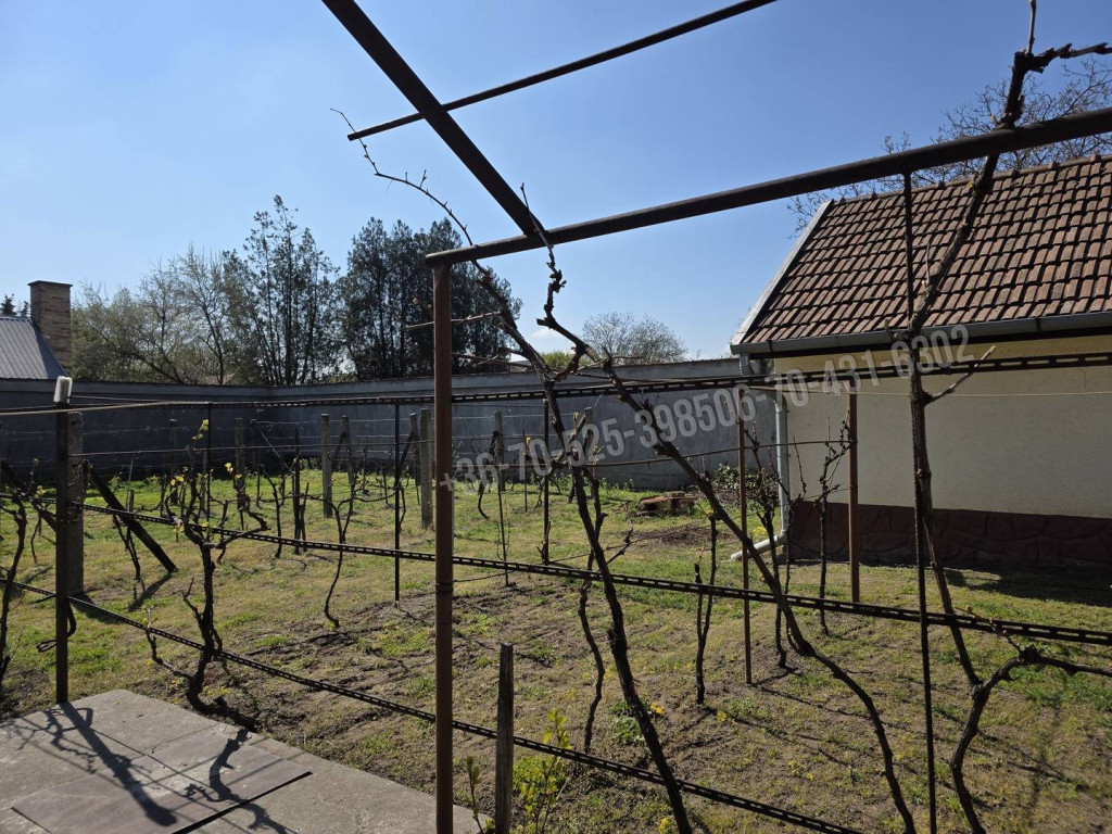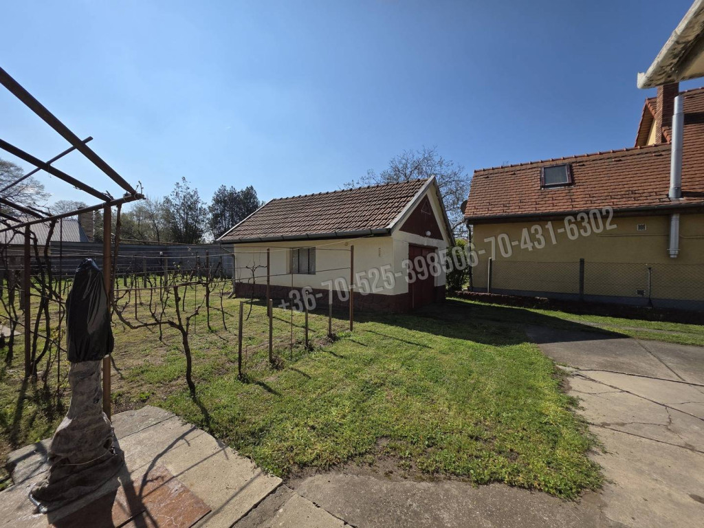 Külön tégla épület a garázs. Az udvar rendezett, betonozott. A kert füvesített, szőlőlugasokkal tűzdelt. A kert gondozására fúrt kút is rendelkezésre áll. A tágas területen gyermekjátszótér és medence is elfér. Ezen a tájon az év minden szakában kiélvezheti a hamisítatlan vidéki életérzést.