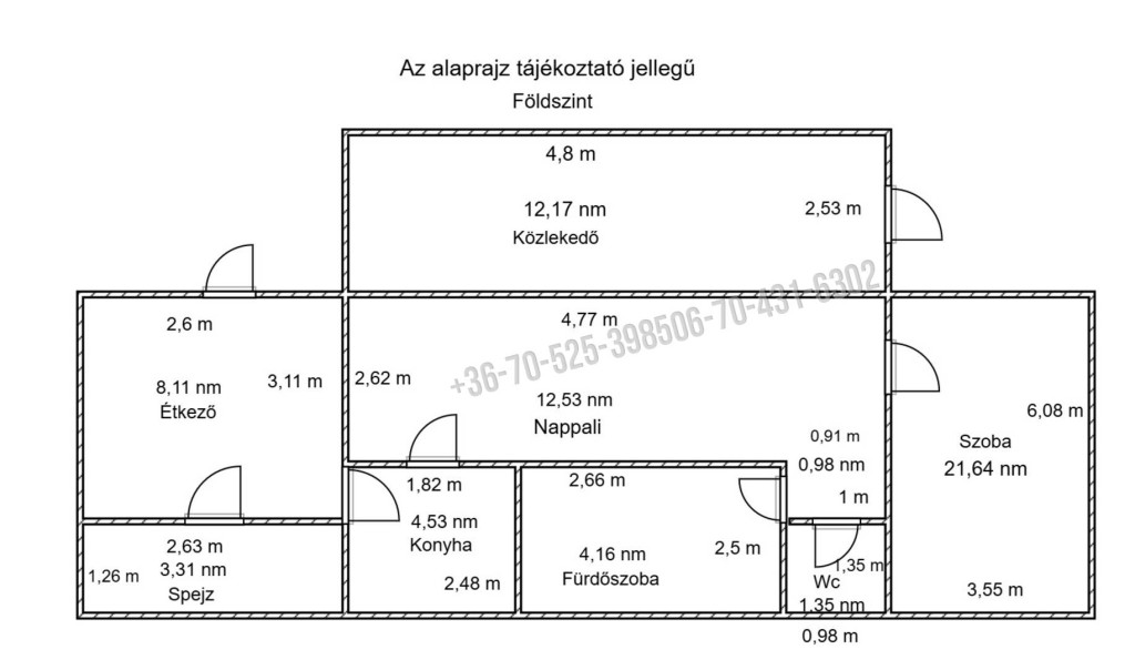 A földszinten: nappali, hálószoba, előszoba, konyha, étkező, kádas fürdőszoba, wc, éléskamra;