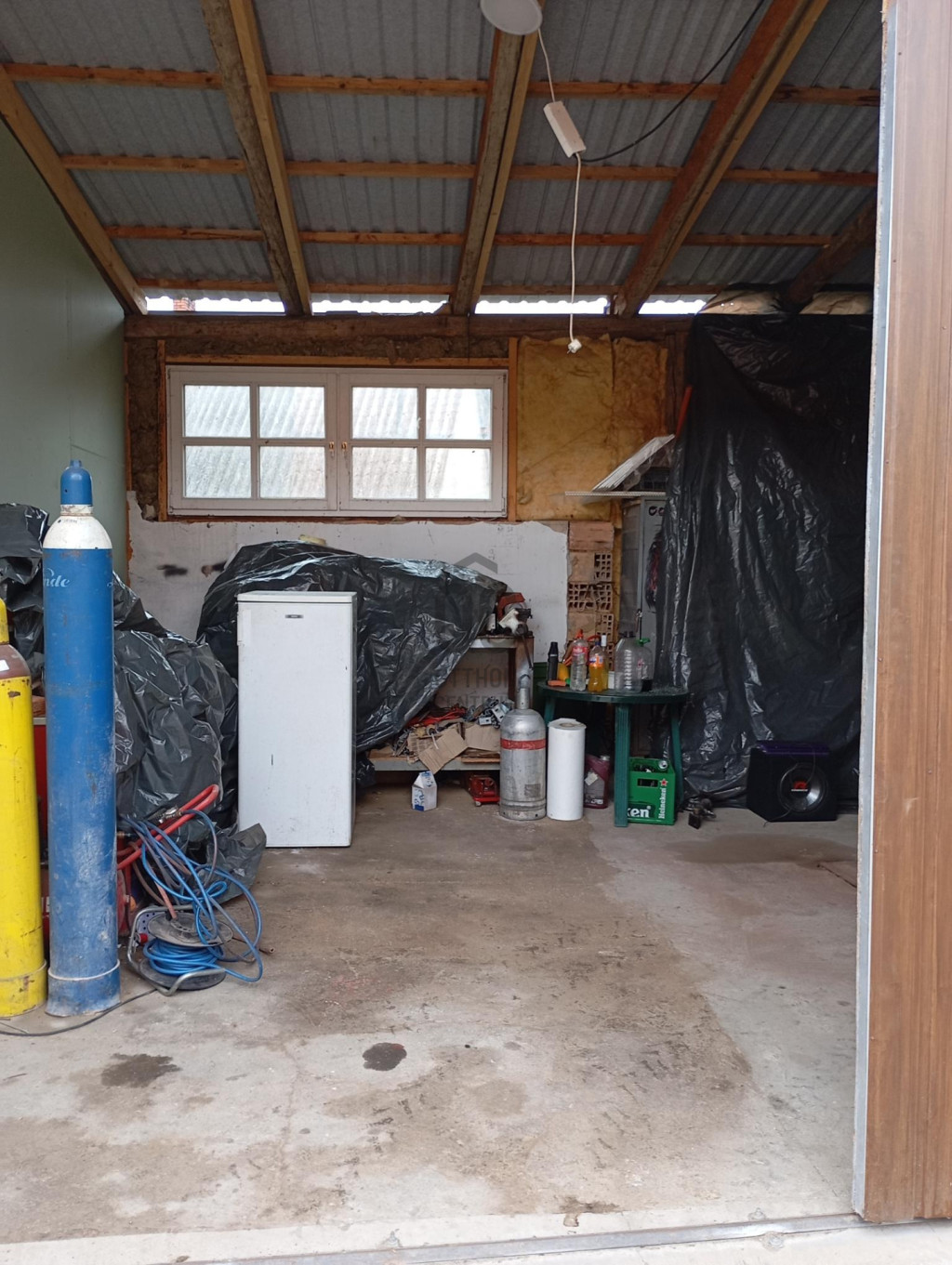 - Nagy méretű könnyűszerkezetes garázs vagy műhely épült mellé tolókapuval,mérete 50m2 3,5 méteres belmagassággal