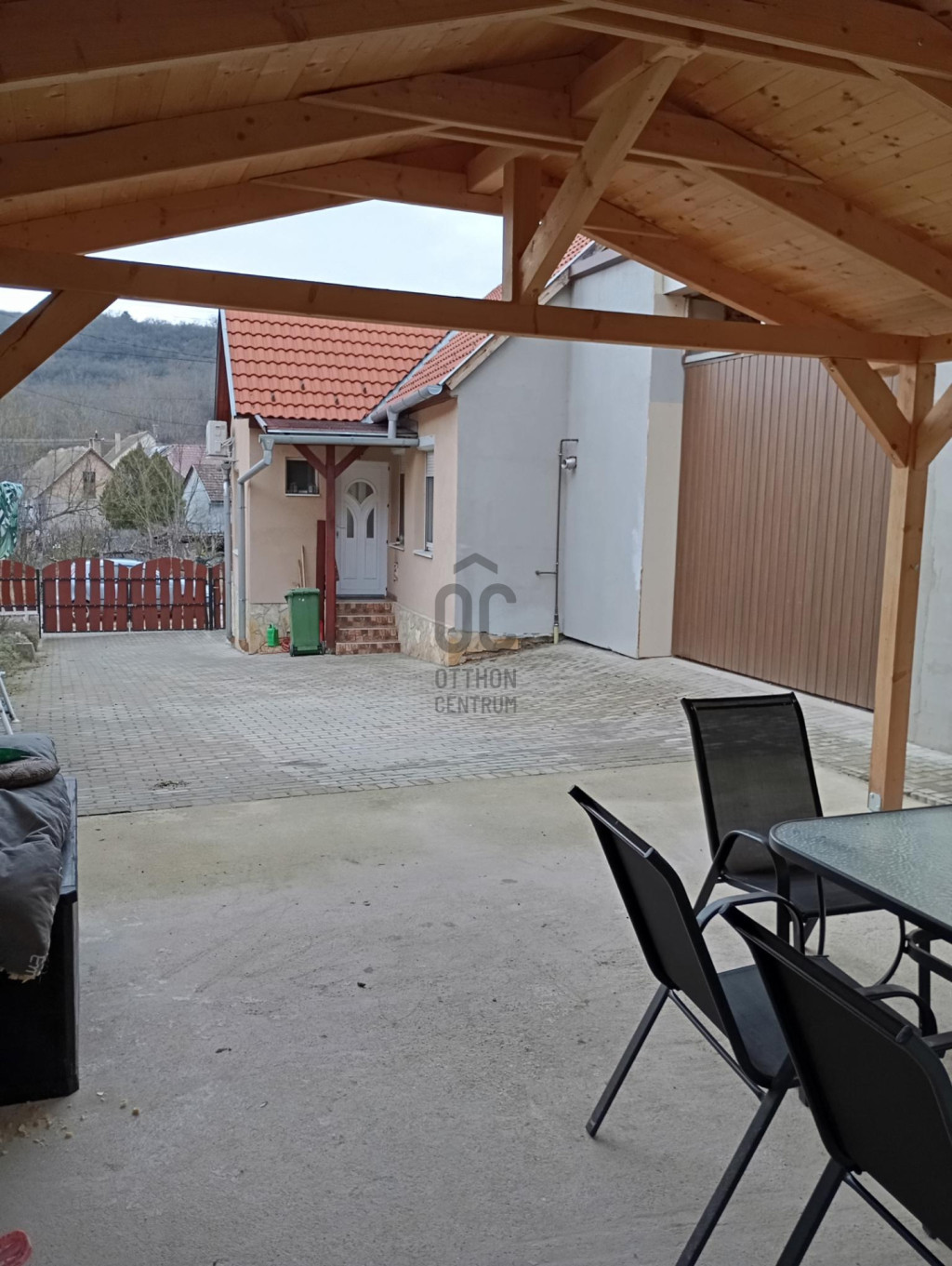 - Az udvaron nagy méretű fedett beálló, vagy kiülő került kialakításra.