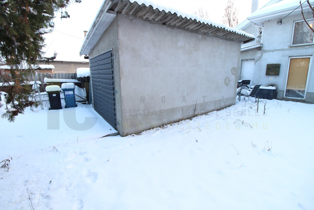 Az udvaron, távirányítós kapun behajtva, külön épületben 20 m2-es garázs szolgál az autó tárolására.