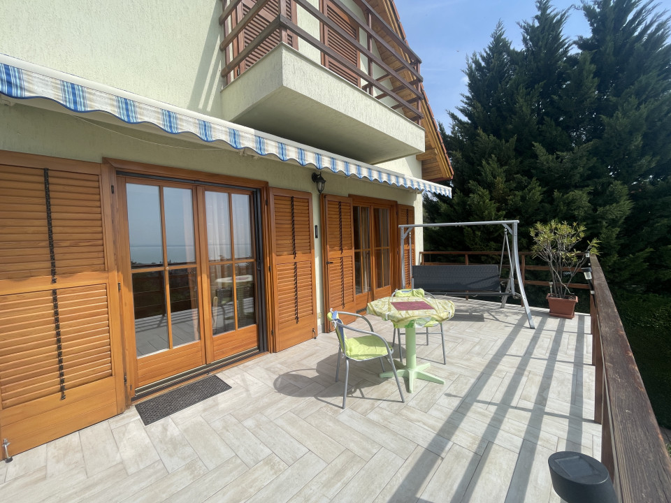 A két nagyméretű, panorámás terasz (22 m2 és 16 m2) valódi kiterjesztése a lakótérnek - reggeli kávéhoz, esti borozáshoz, vagy egyszerűen a látványhoz. A kertben egy 8×4 méteres, fedéssel ellátott medence kapott helyet, amely tovább emeli az ingatlan nyaralóhangulatát.