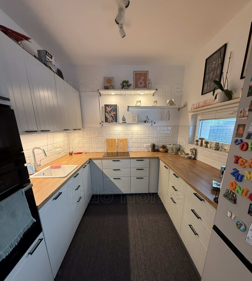 -konyha (praktikus, jól kihasznált beépített gépekkel és bútorokkal: az ár része!!)