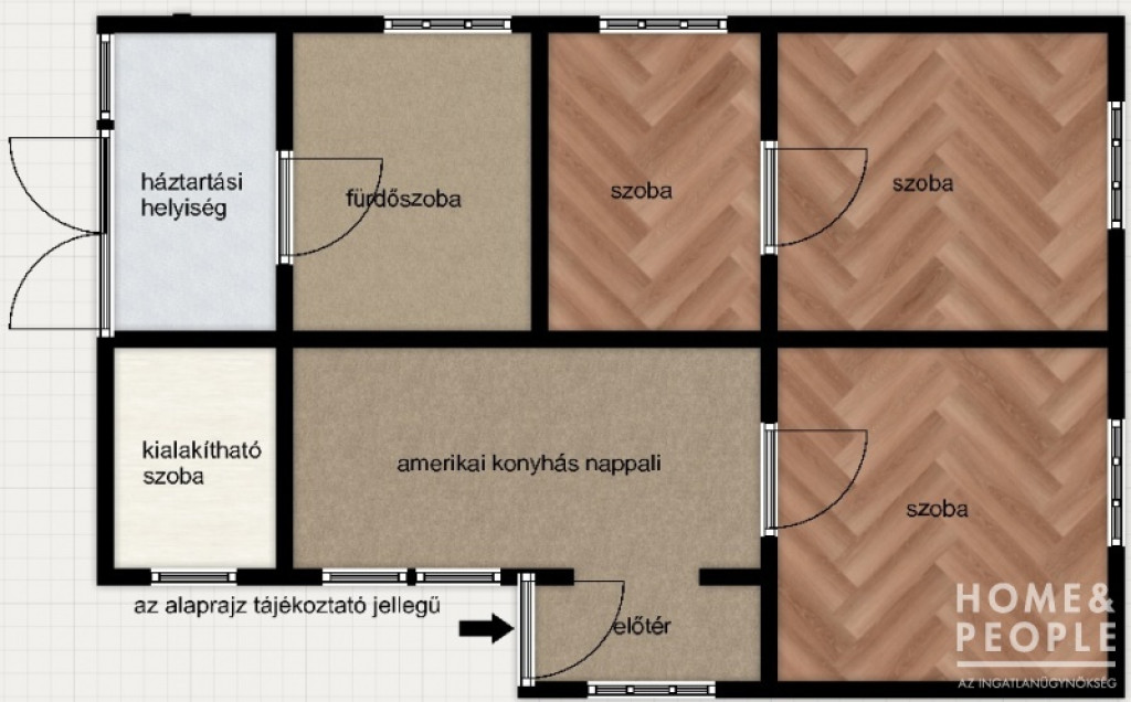 - amerikai konyhás nappali, fürdőszoba, előtér, 3. szoba (4 szoba kialakítására van lehetőség)