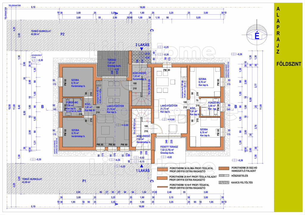 Mindegyik apartman amerikai konyhás nappalival, két hálószobával, fürdőszobával, közlekedővel és saját terasszal rendelkezik. A 2026‑os építésű ház hőszigetelő Porotherm téglából készült, monolit vasbeton födémmel és Bramac beton cserépfedéssel. A falak, a tető és a földszinti padlók egyaránt szigeteltek. A nyílászárók fokozott légzárású, hőszigetelő üvegezésű műanyagból készültek, a helyiségek természetes szellőzésűek.