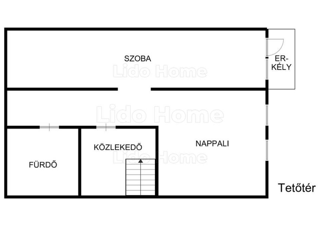 -A tetőtérben szintén egy önálló apartman található. -konyha, nappali, szoba, erkély, fürdőszoba kialakítású.