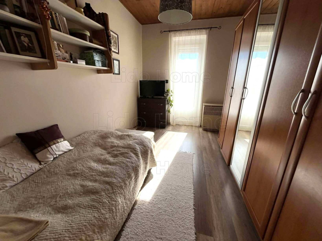 -A félemeletre egy külső lépcsőházban juhatunk fel, ez egy belső lépcsővel összkapcsolt 2 szinten lévő tágas apartman. -Az alsó szintjén tágas, dél-nyugati tájolású nappali található terasszal, konyha- étkezővel, mosókonyha, közlekedő. -A felső szinten 3 kényelmes hálószoba, fürdőszoba, közlekedő és egy nagy L alakú, dél-nyugat tájolású terasz várja új tulajdonosát.