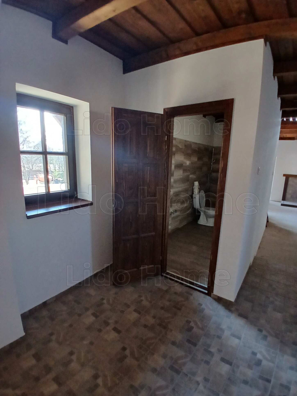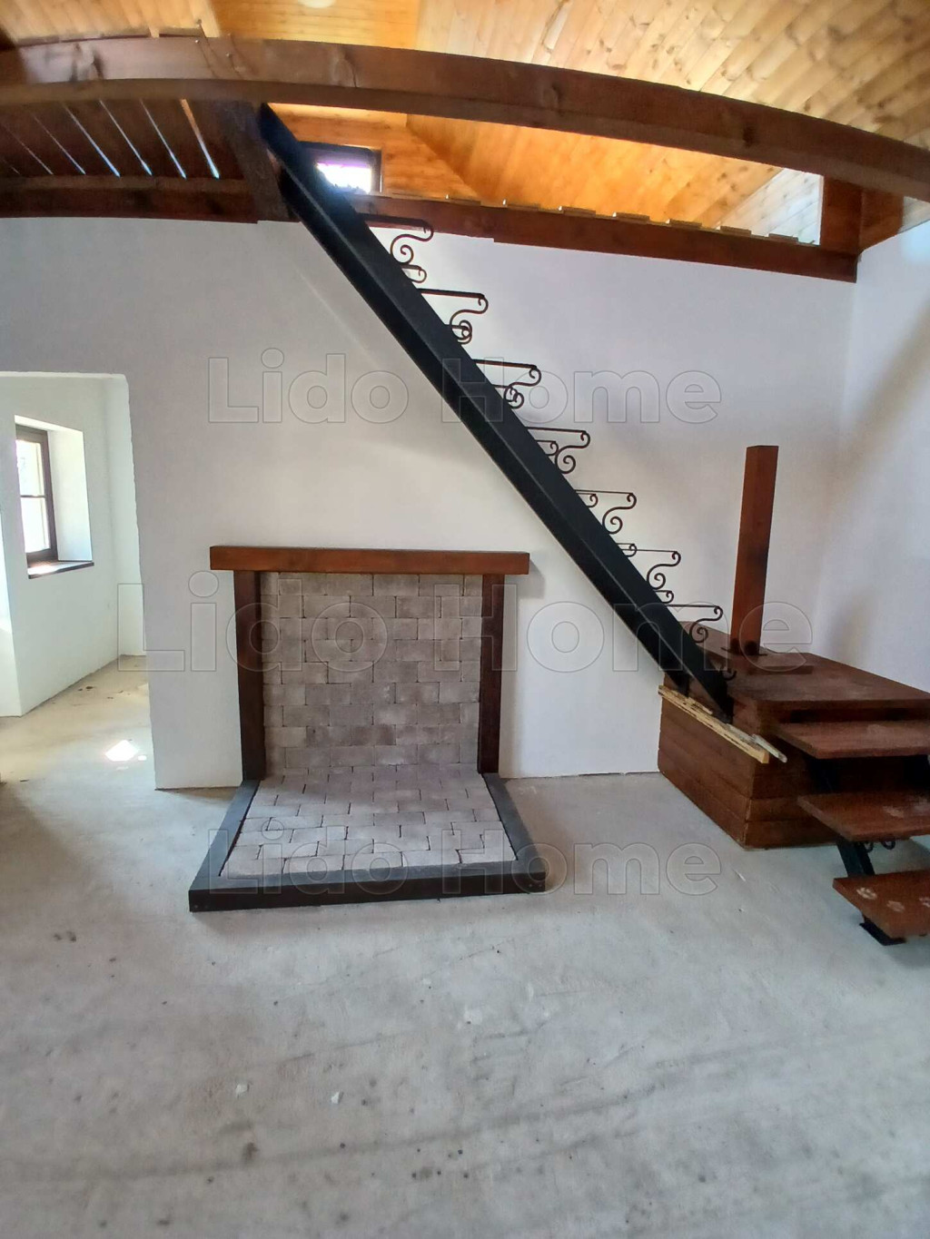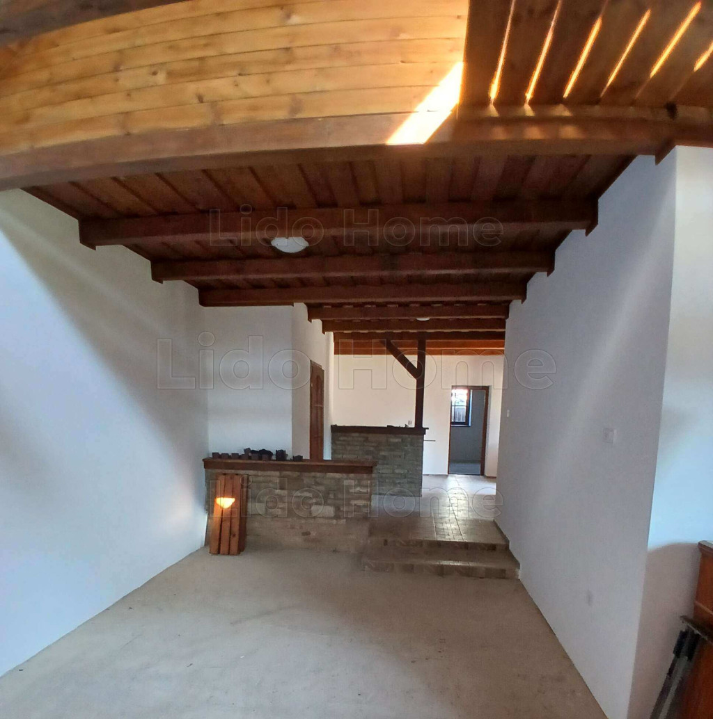 A gáz az épületben van, a régi tulajdonos kandallót és norvég paneleket álmodott a házba. De ez már az új tulajdonos igényeire vár.