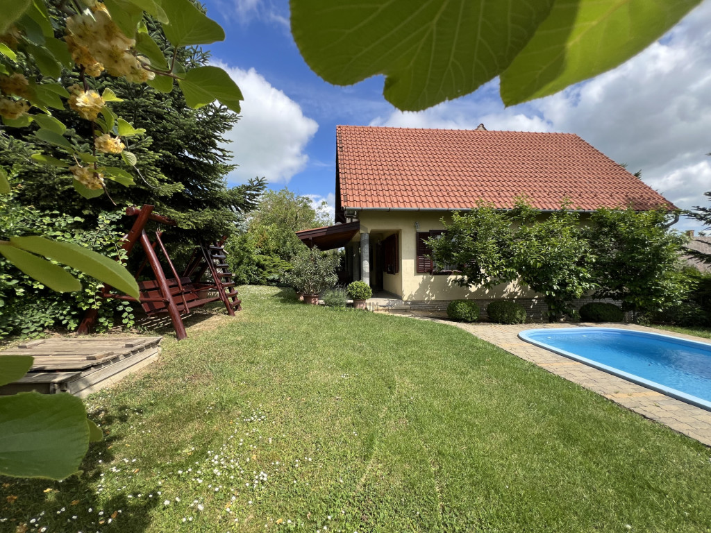 A tágas, fedett terasz kiváló helyszíne baráti és családi összejöveteleknek, a gondozott kert és a medence pedig valódi nyaralóhangulatot teremt a mindennapokban.
