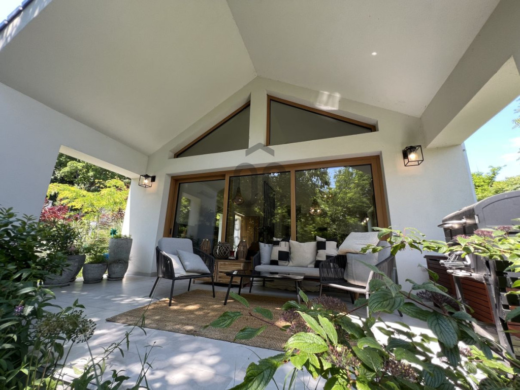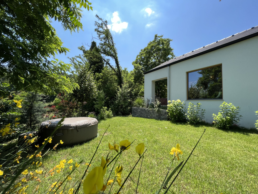 A 2020-ban épült ingatlan, egy gyönyörűen parkosított 890 nm-es telken fekszik.