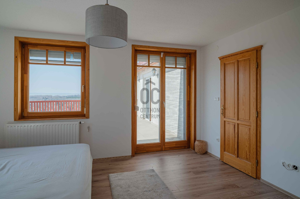 Az ingatlanról - már a kertből is - kivételesen széles kilátás tárul elénk az ezerarcú, ezerszínű tóra - előtérben a Szent Mihály kápolnával - és a Keszthelyi hegység egyik legszebb részére.