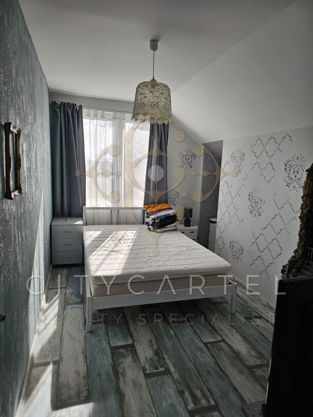 A külső lépcsőn megközelíthető emelet teljesen különálló, már felújított és lakható: