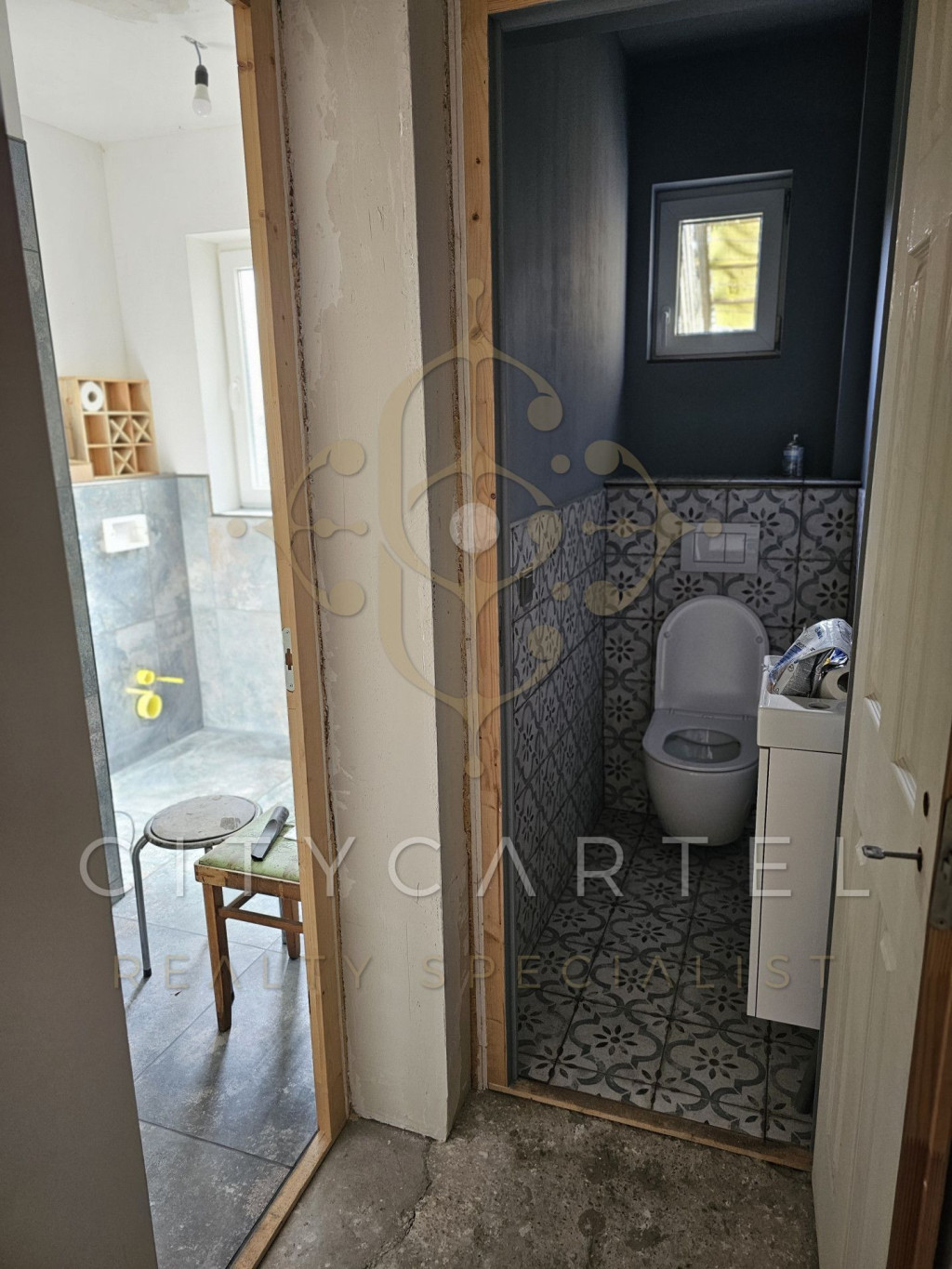- különálló WC (csempézve, szerelvényezve)