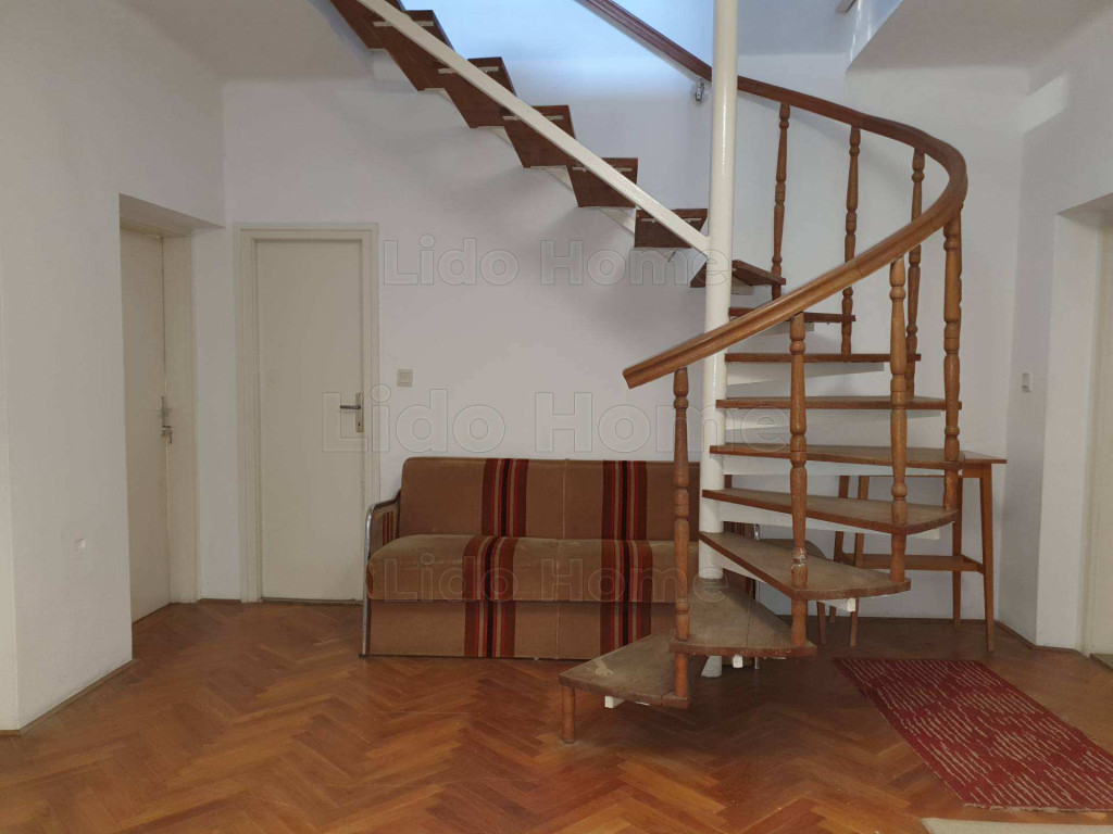 - A lépcső a házon belül visz fel az emeletre, ahol még egy nagy nappalit, 2 szobát, főzőfülkét, fürdőszobát WC-vel, 4 tárolót (akár gardrób is lehet) és az erkélyt találjuk.