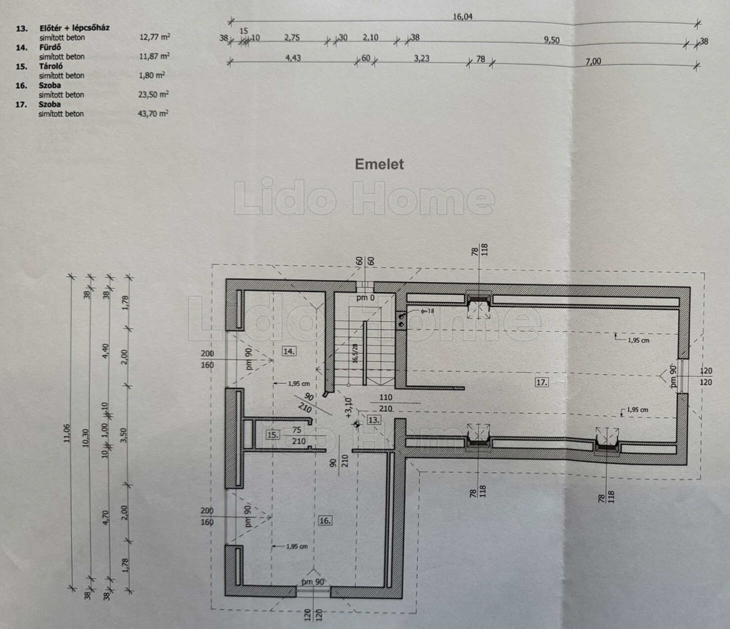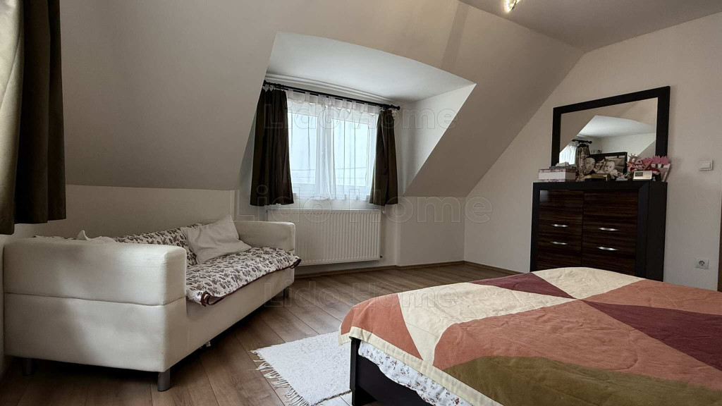 Tetőtér: 2 szoba, fürdő WC‑vel, tároló, közlekedő.