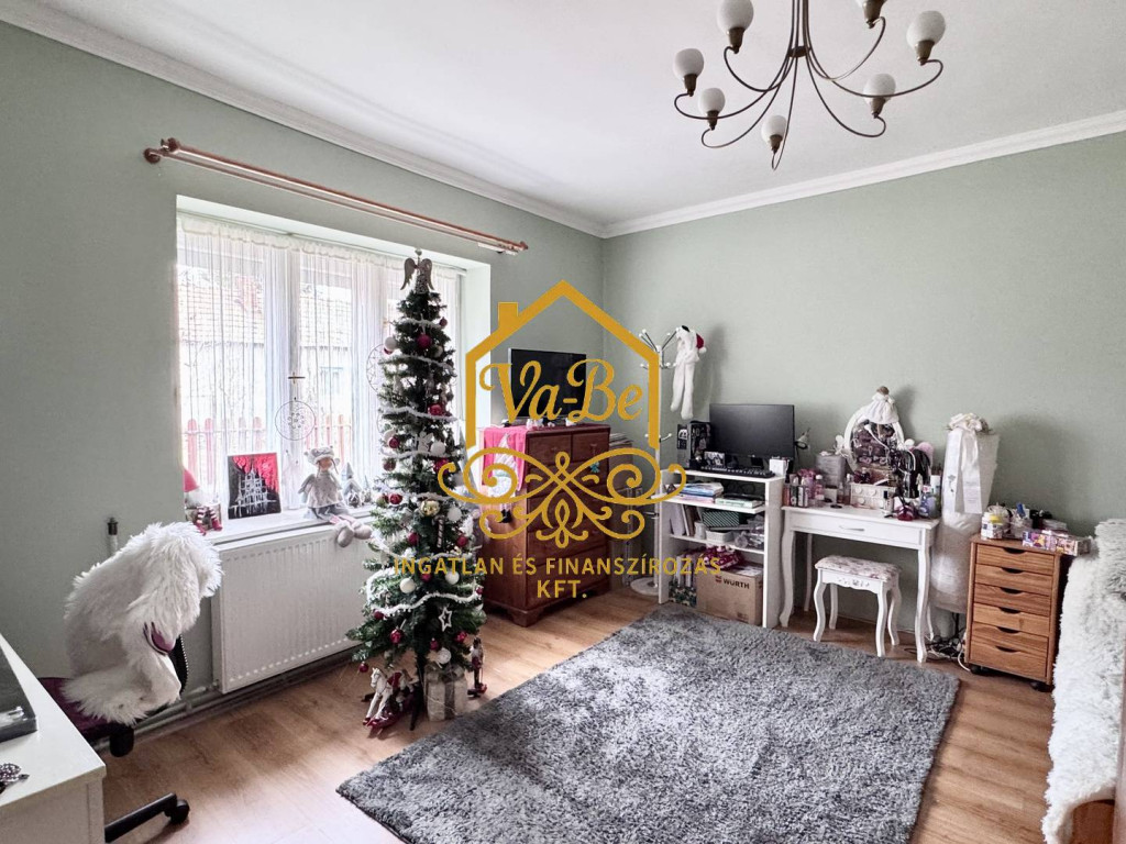 Az egész ház napfényes, világos. Felújítása során minőségi anyagokat használtak. A szobákat laminált lappal, a többi helyiséget járólappal burkolták.