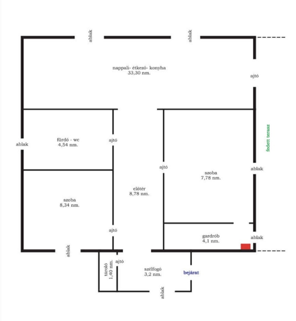 - Szobaszám 2 + 1 fél