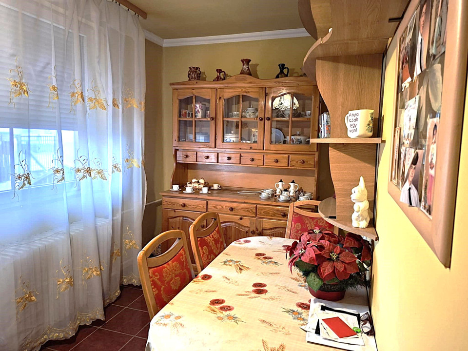 A ház helységei: két hálószoba , konyha, fürdőszoba WC-vel, mosokonyha és étkező-konyha, előszoba és egy közlekedő.