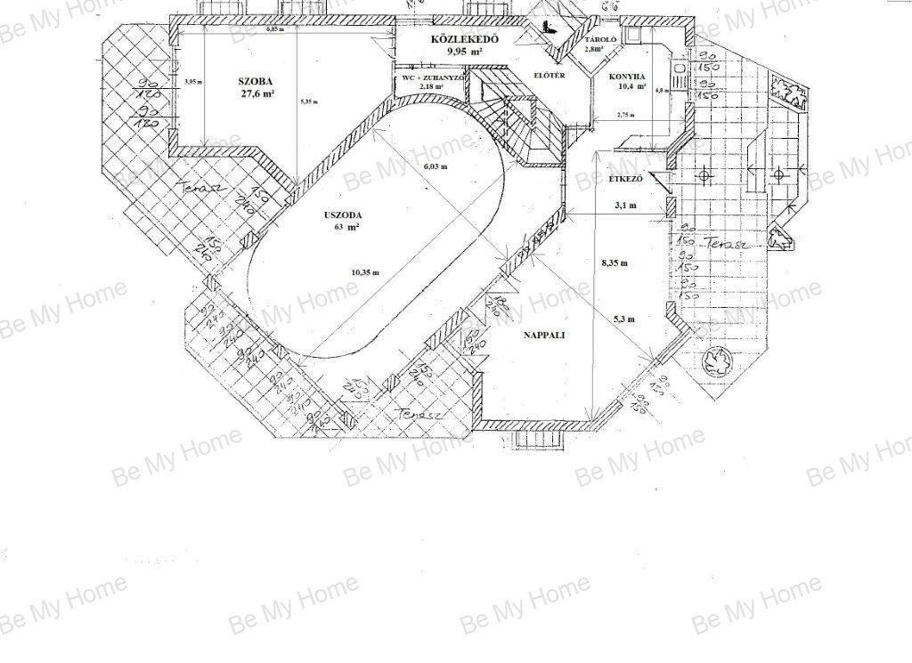 A telekre további különálló épület építhető, vagy a ház átépítésével többlakásos társasházként is hasznosítható.