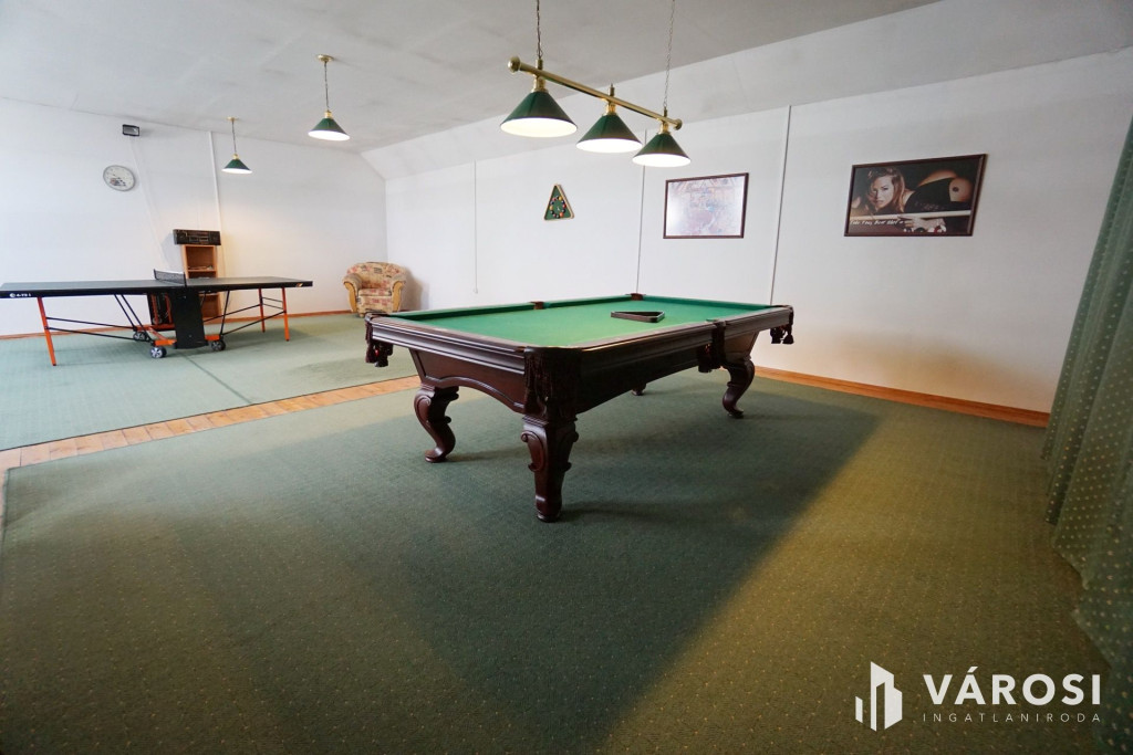 Az emeleten egy egyterű, exkluzív szabadidő- és élménytér került kialakításra, amely jelenleg biliárd- és pingpongasztallal, valamint társalgó résszel szolgálja a kikapcsolódást, de igény szerint további funkciókkal is bővíthető.