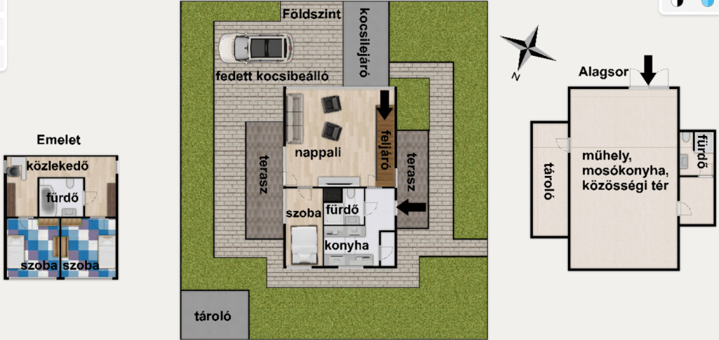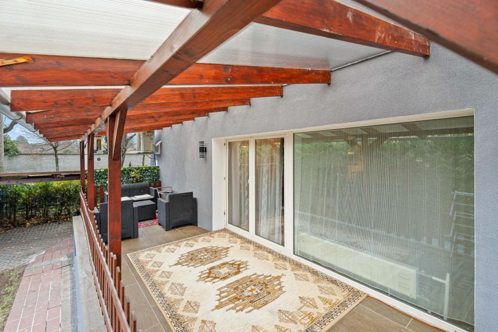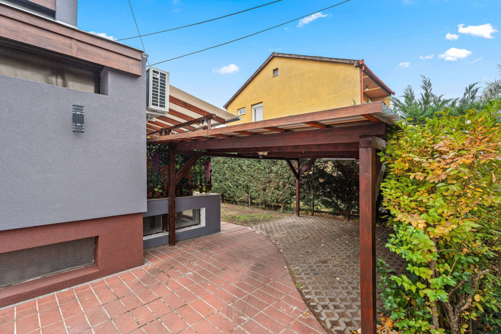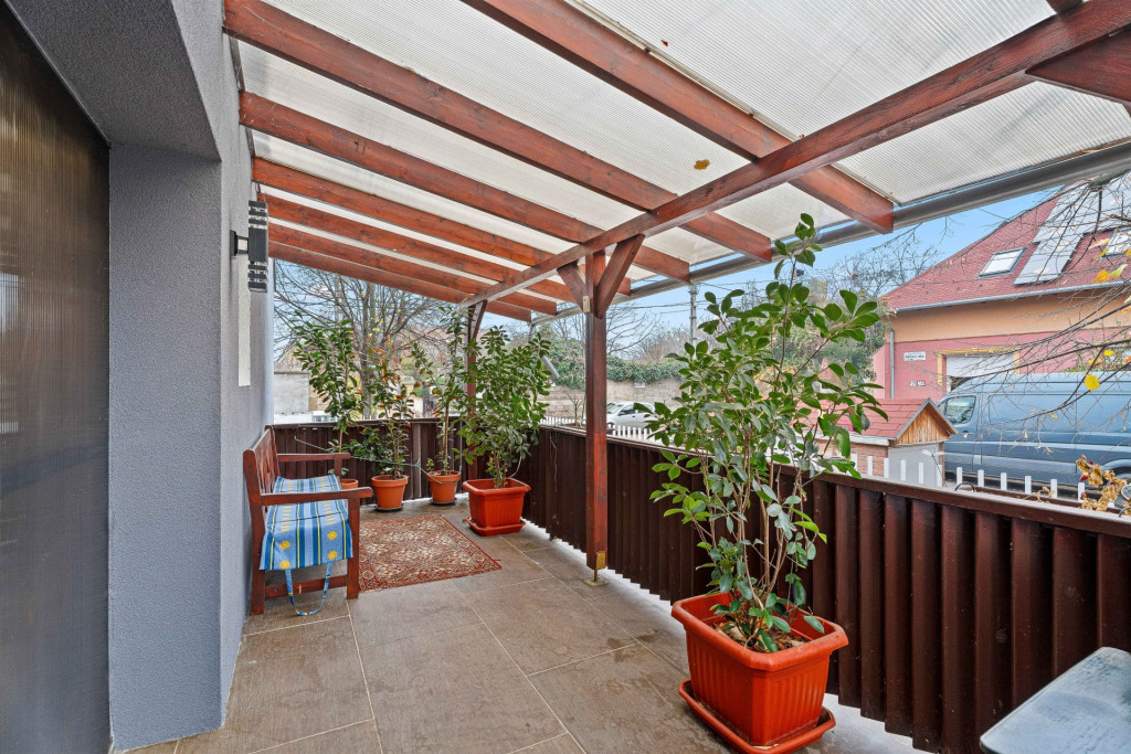 - elöl, hátul fedett terasz és fedett kocsibeálló,
