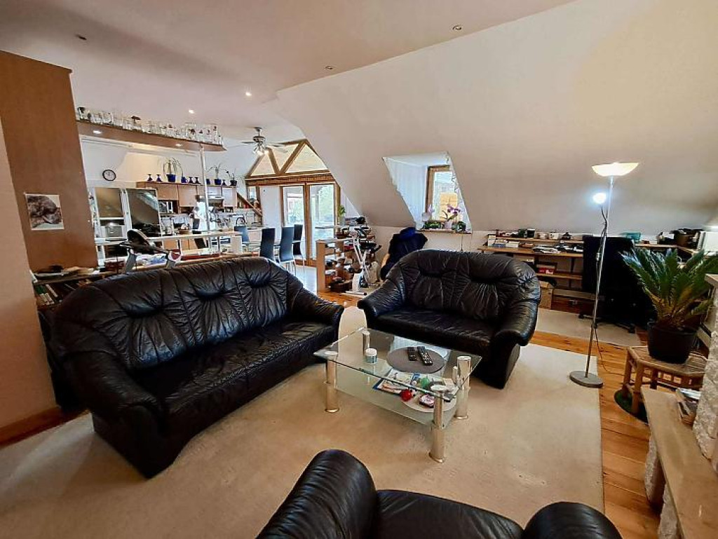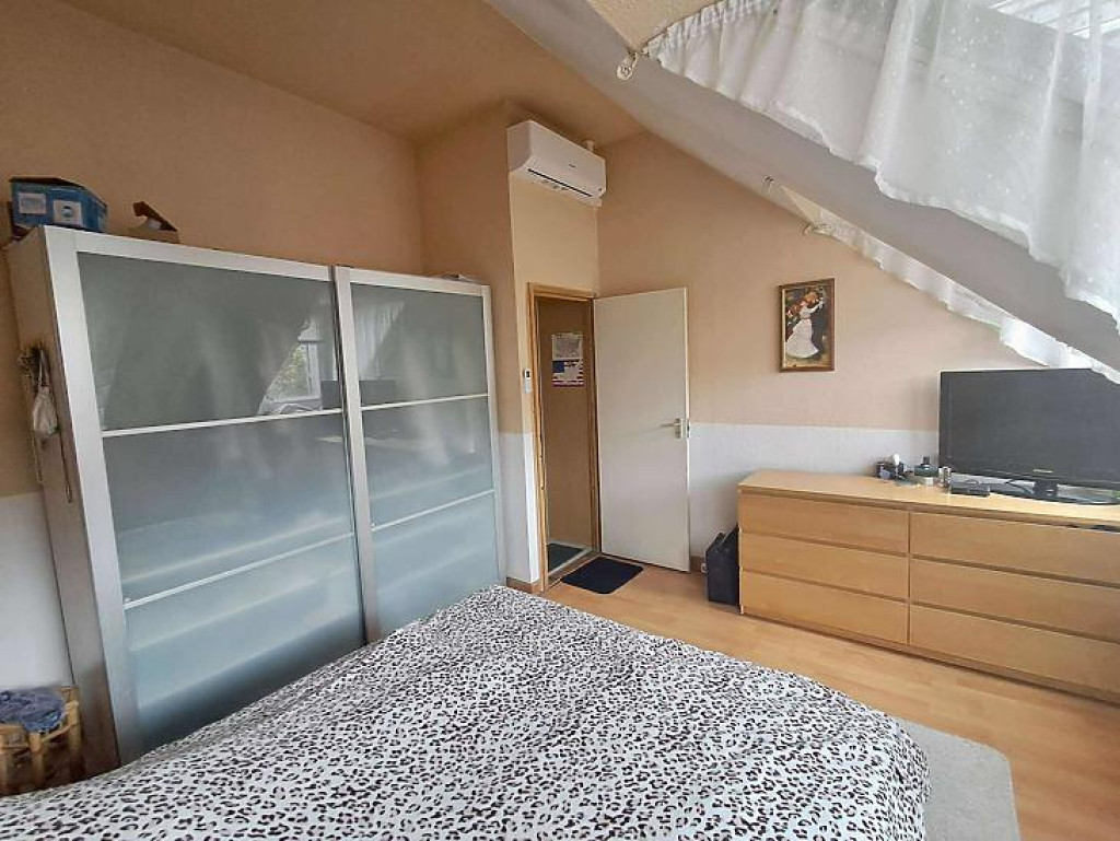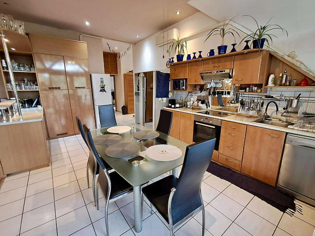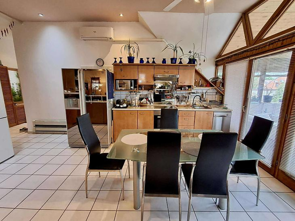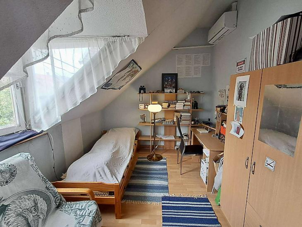 Téglaégetésű, az 1990-es években épült, esztétikai és műszaki felújítást igényel. Összesen 6 szoba, 2 konyha, 2 fürdőszoba, tároló, pince áll rendelkezésre. A fűtést kombi cirkó és 4 db hűtő-fűtő klíma biztosítja. Tartozik az ingatlanhoz egy 20 m2 terasz és egy 12 m2-es erkély. Az alsó és a felső szinten a mérőórák külön vannak.