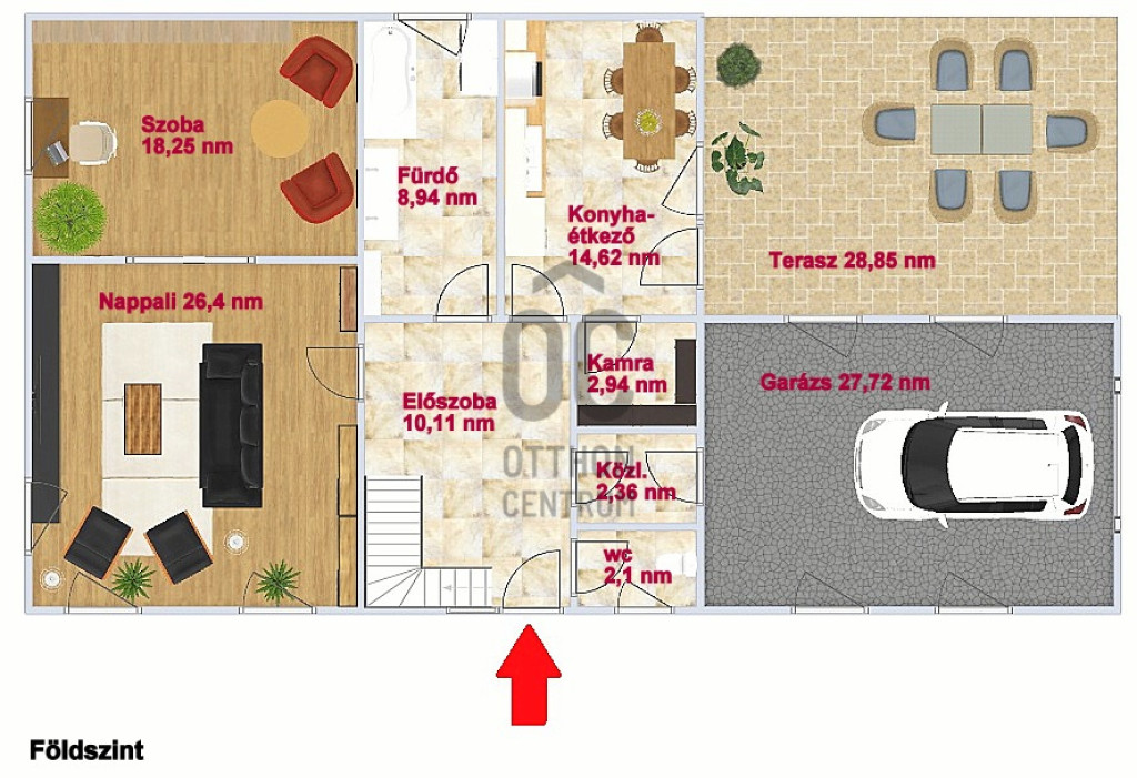 + A háznak van egy 2 férőhelyes garázsa is, mely 27,72 nm.