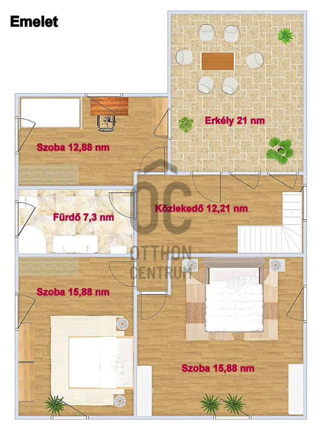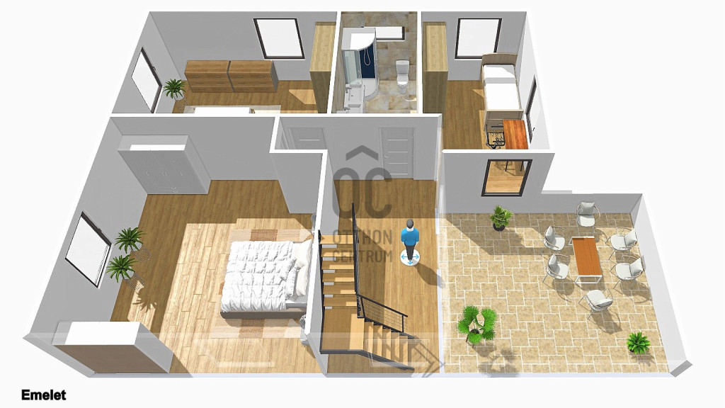 + A földszinten egy 28,85 nm-es terasz és az emeleten pedig egy 21 nm-es is rendelkezésre áll, ahol a szabadban élvezheti a napsütést vagy a hűvösebb estéken a friss levegőt.
