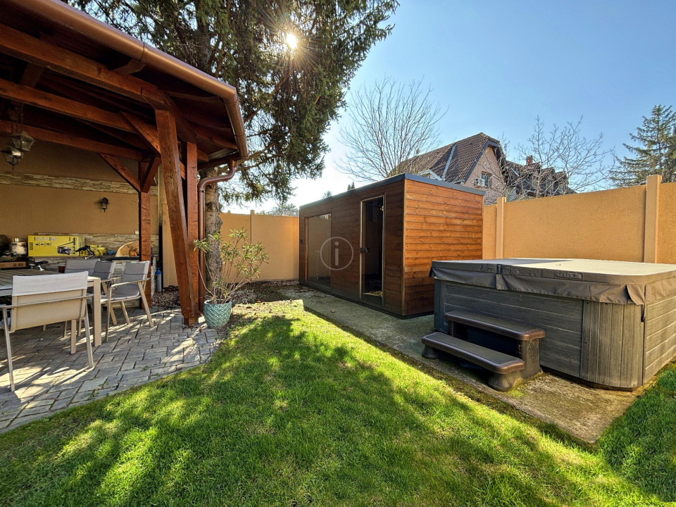 A KIVÁLÓ lokációban, 555 nm összközműves telken lévő ingatlanok mérete összesen bruttó 190 nm. Az automata öntözőrendszerrel rendelkező, kertész által GONDOZOTT kertje a szomszédok által elzártan kialakított FEDETT grill terasszal, 4 személyes SZAUNÁVAL, 5 személyes JACUZZIVAL, maximálisan élhető, MINŐSÉGI kikapcsolódást nyújt.