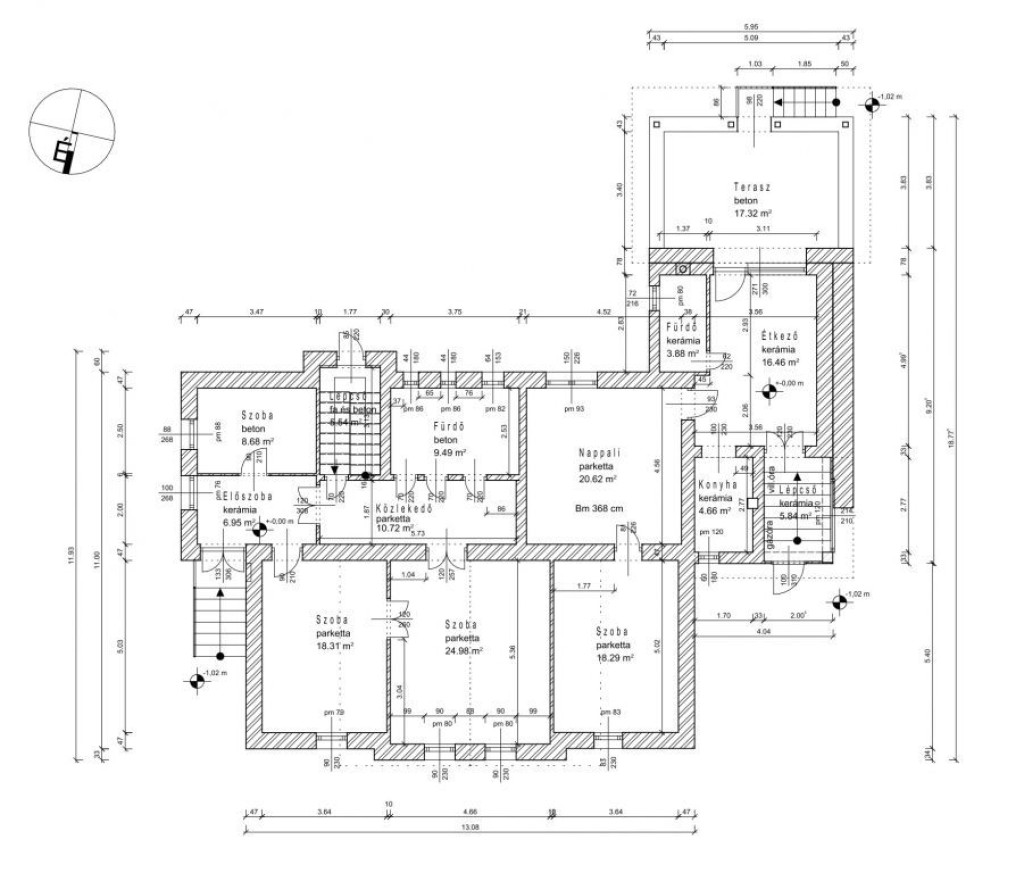 - Nyílászárók: eredeti fa szerkezetek