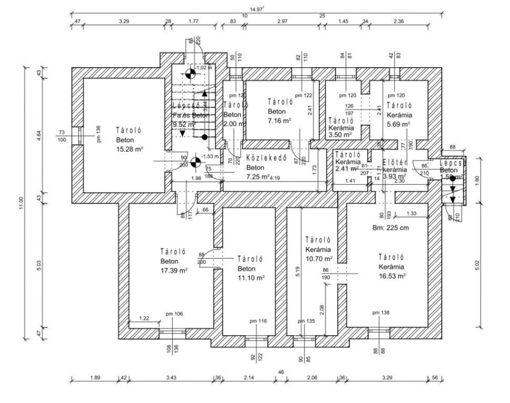 - Garázs: jelenlegi állapotában nem megtartható