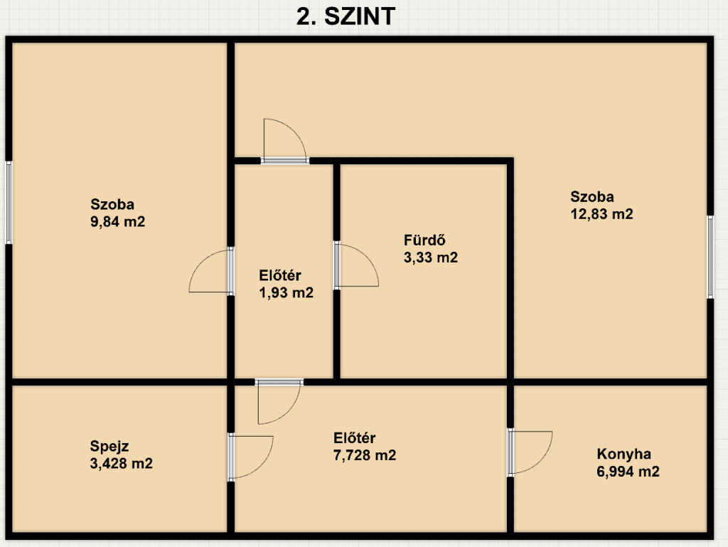 4 szoba, 2 konyha, 2 fürdőszoba, tároló