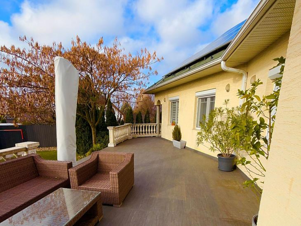 Közel 40 m²-es, napfényes terasz, amely ideális pihenéshez és vendégfogadáshoz
