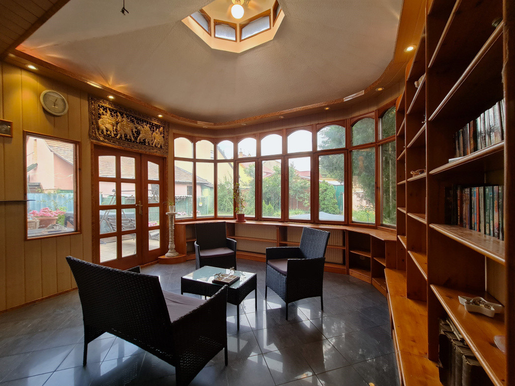 A 137 m2-es családi ház kifejezetten tágas, hiszen csupán 29 m2-es nappalit és egy 23 m2-es hálószobát kínál. Igaz, hogy az épületnek van egy különleges helyisége is, amely funkciójának csupán a fantázia szab határt. Ez télikert, nappali, vagy akár egy könyvtárszoba is lehet. Mögötte egy 15 m-es helyiség és vizesblokk található, ahol most egy szauna üzemel, így még nagyobb potenciál rejlik a helyiségben.