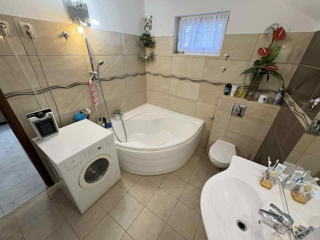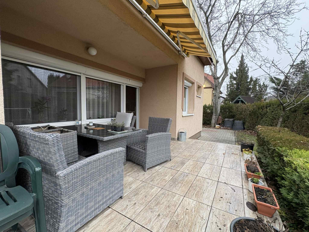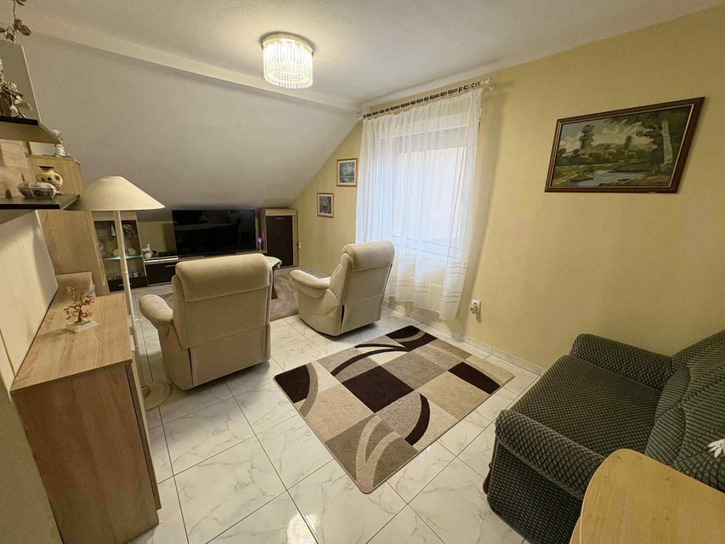 A fűtésről egy 2 éves kondenzációs gázkazán gondoskodik radiátoros hőleadással, rendelkezésre áll egy fatüzelésű kazán is, mely szintén a rendszerhez van kapcsolva, így bármikor használható. Az ingatlan gyakorlatilag költségmentes, egy friss tisztasági festés után azonnal költözhető. A nappaliból közvetlen kertkapcsolatunk van, és egy barátságos járólappal burkolt teraszra lépünk ki.