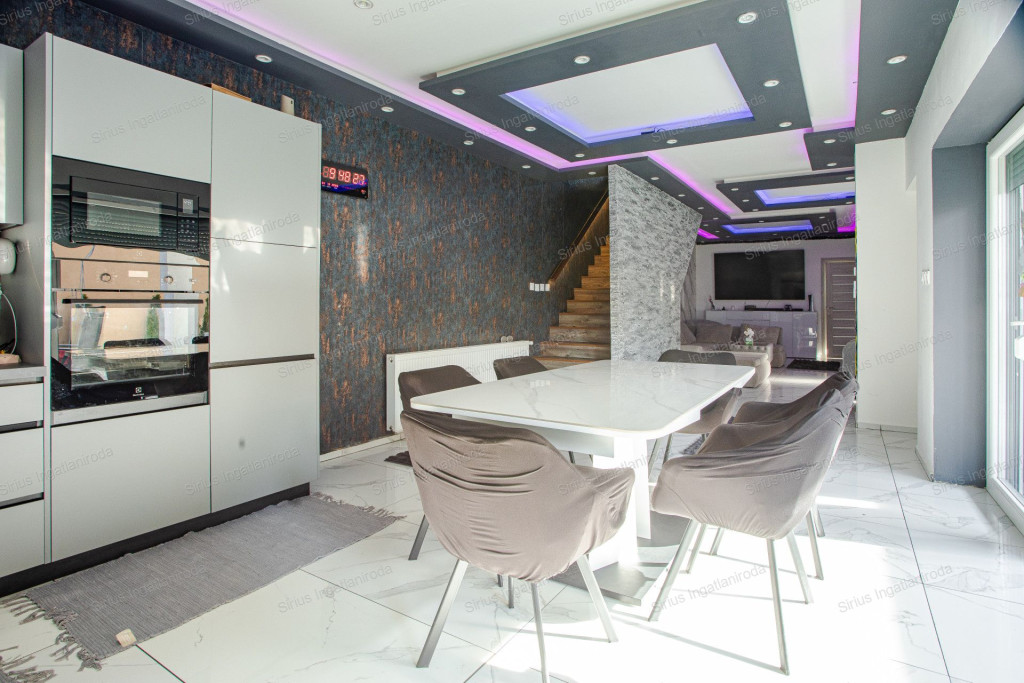 A ház belső kétszintes kialakítású, MODERN ELRENDEZÉSÉNEK köszönhetően ideális választás családok számára.