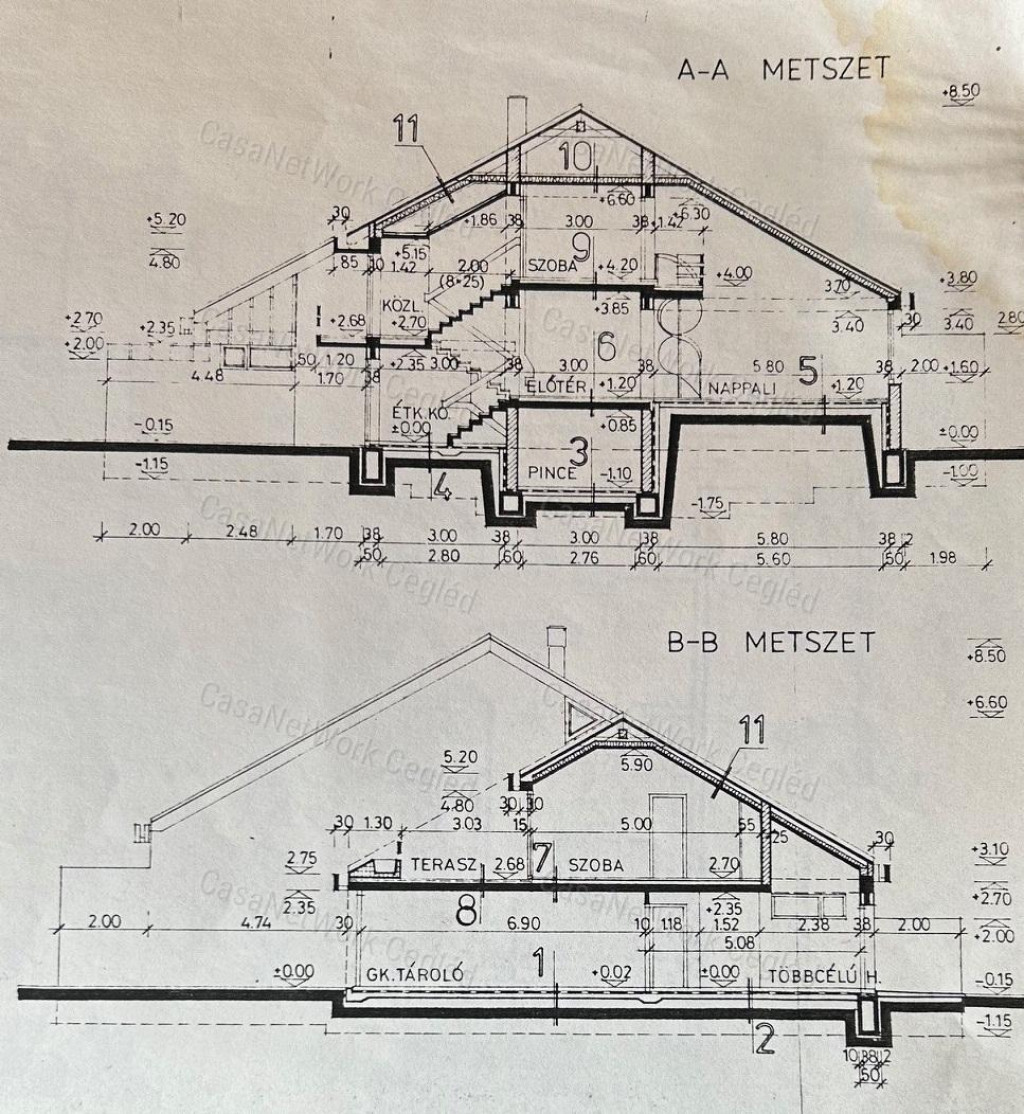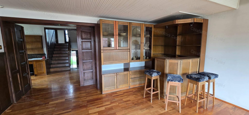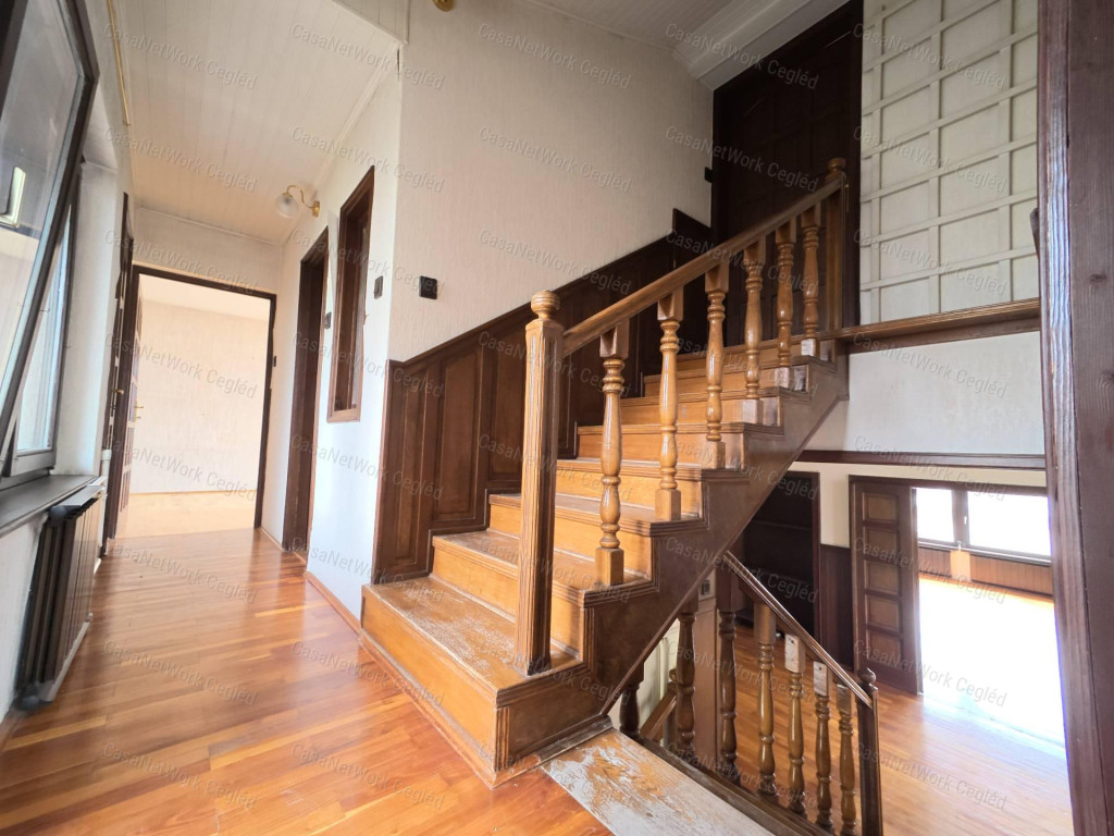 A ceglédi CasaNetWork Ingatlanhálózat eladásra kínálja a 174602255 azonosítószámú, egyedi kivitelezésű családi házat Cegléden, remek elhelyezkedéssel. Az ingatlan egy 1962 m²-es telken helyezkedik el, a ház lakóterülete 230 m², szinteltolásos építésű. A tervek 1985-ben készültek el, azonban az épület 1990-ben készült el teljesen, és jelenleg is az építtető család tulajdonában van. Családi tervező mérnök terve és kivitelezése alapján készült az ingatlan.A ház masszív, időtálló szerkezettel épült: vasbeton szerkezet, tégla és gázszilikát tégla felhasználásával, amely energetikailag is kedvező megoldást biztosít. A pince szintje tömör téglából készült egészen a terasz szintjéig. A tetőfedés anyaga Bramac cserép.Az ingatlanhoz a telken belül tartozik egy különálló, 130 m²-es faépület is, amely korábban műhelyként funkcionált; itt vezetékes víz és ipari áram is rendelkezésre áll. A telken továbbá egy háromállásos garázs is található. A ház teljes egészében körbe van terasszal és erkéllyel, összesen három terasszal, amelyek kényelmes kültéri kapcsolódást biztosítanak minden szinten.Az épület belső elrendezése jól átgondolt és tágas. A földszinten kamra, nagy mosókonyha, külön WC, konyha és fürdőszoba található. Fél szinttel fentebb étkező, nappali és terasz, míg az emeleten 3 szoba, 2 fürdőszoba, gardrób, loggia, erkély és galéria biztosítják a kényelmet.A belső terekben tömörfa parketta, egyedi fa burkolatok és galériás bárszekrény található. Az épületben 21 darab tömörfa ajtó és tömörfa korlátos lépcső emeli az eleganciát. A nyílászárók dupla rétegű üvegezésű, tömörfa szerkezetűek, kiváló hő- és hangszigeteléssel.Az udvaron fúrt kút is rendelkezésre áll. A kertben több dísznövény található, amelyek természetközeli, árnyas hangulatot biztosítanak.A telek adottságai alapján az ingatlan befektetési célra is kiváló, akár 6–8 lakás kialakítására is alkalmas.Amennyiben a CasaNetWork – Cegléd kínálatában szereplő ingatlan felkeltette érdeklődését, forduljon hozzánk bizalommal!