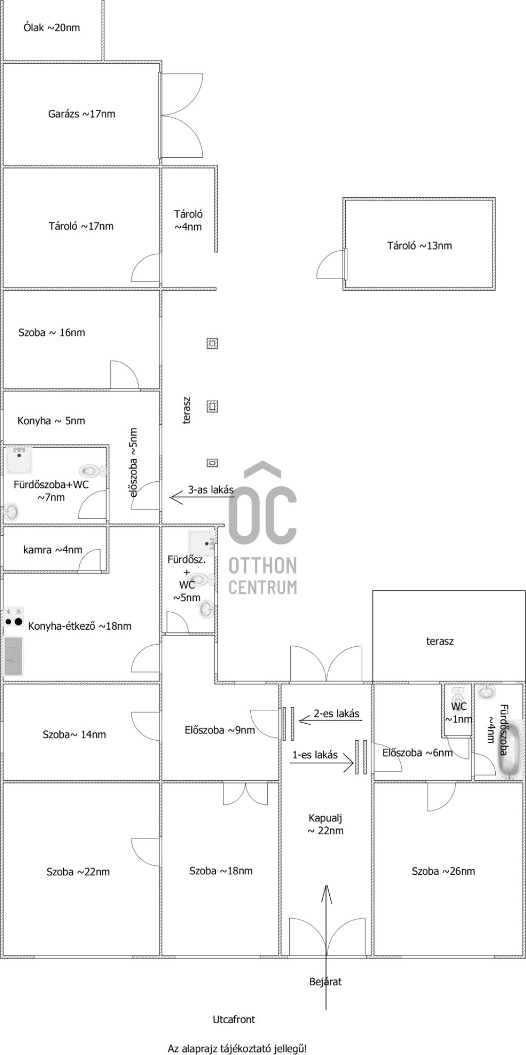 - egy 37 nm-es, 1 szobás lakás kialakítható minikonyhával és fürdővel, külön WC-vel,
