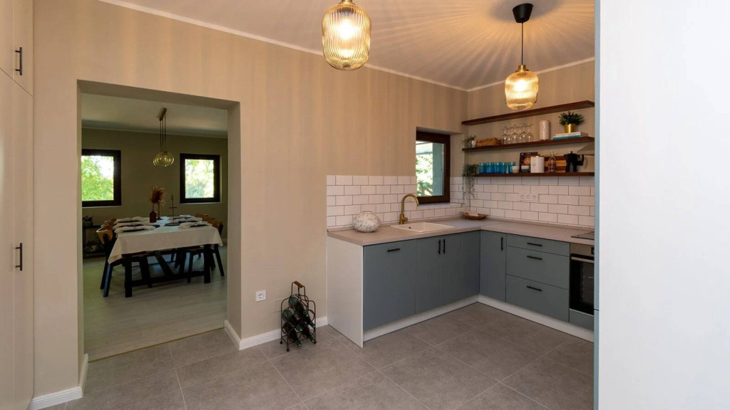 A mintegy 6.000 m²-es, gondozott telken álló ház ideális választás mindazok számára, akik valódi térre, nyugalomra és hosszú távon is értékálló otthonra vágynak a Balaton közelében. A körülbelül 155 m²-es lakóterület világos, letisztult vonalvezetésű helyiségekből áll. A gondosan megtervezett belső terek, a modern beépített konyha és a hozzá harmónikusan kapcsolódó étkező és nappali a családi élet helyszíne. A nappali központi eleme a hangulatos kandalló, amely a hűvösebb hónapokban meghitt atmoszférát teremt, míg a klímaberendezés a nyári időszakban biztosít kellemes hőmérsékletet. A három külön nyíló Hálószoba nyugodt, privát életteret kínál, míg az ízlésesen kialakított fürdőszobák azonnali beköltözést tesznek lehetővé.