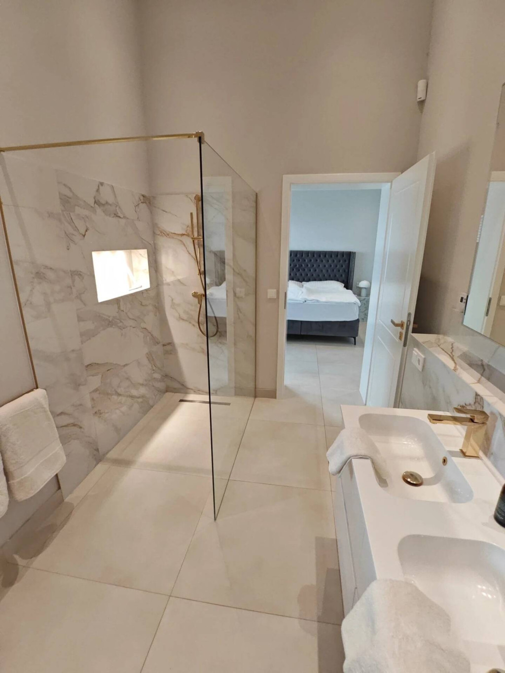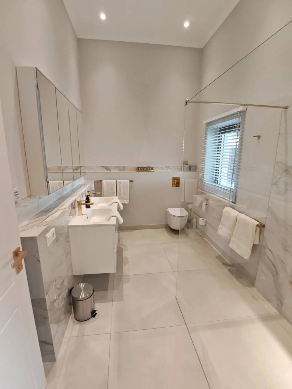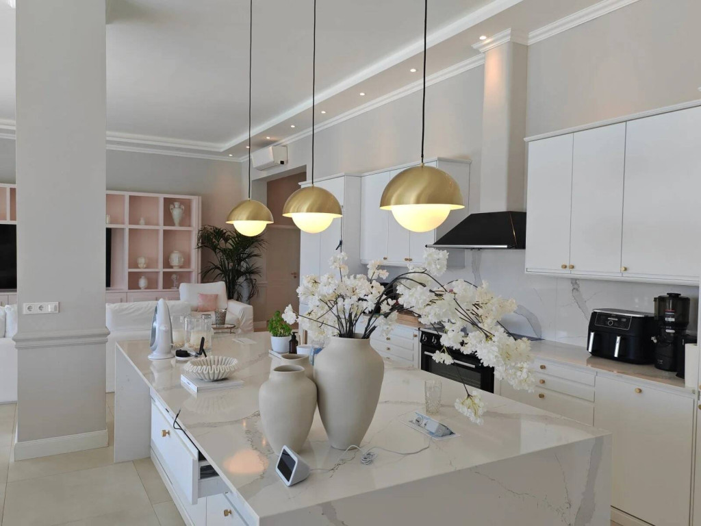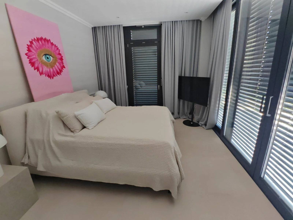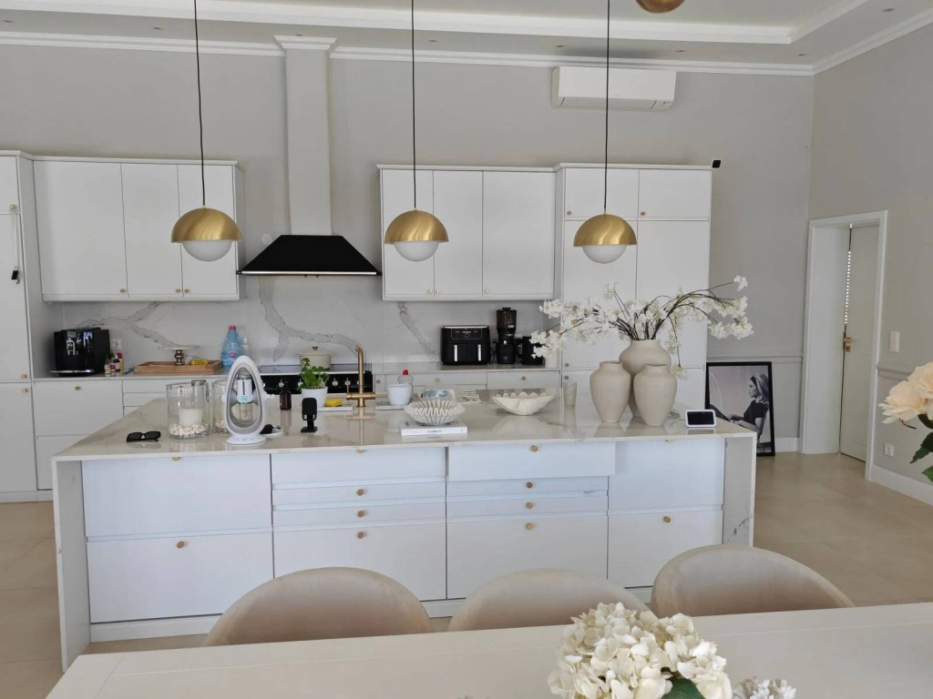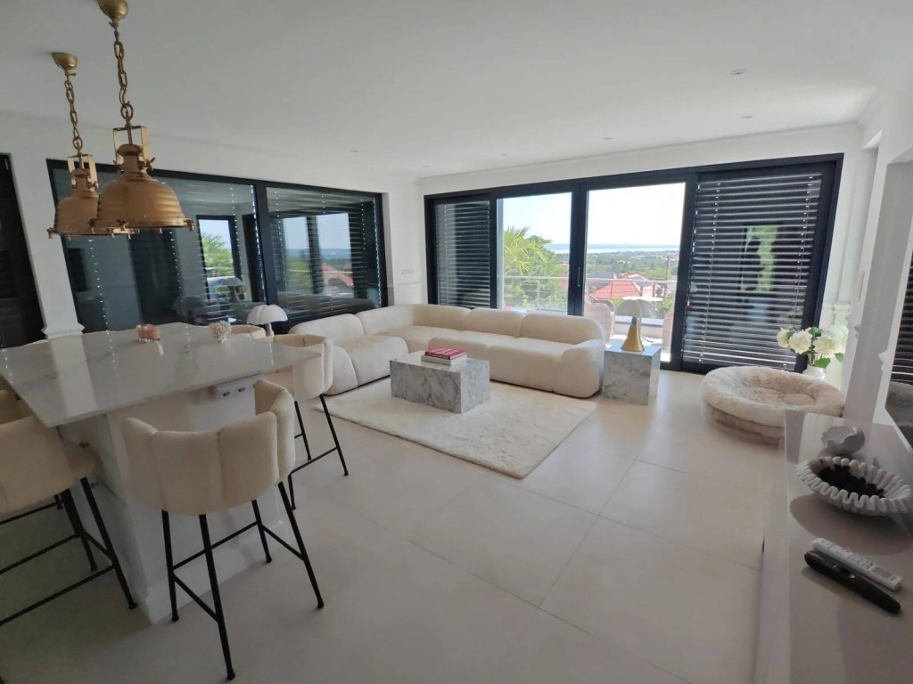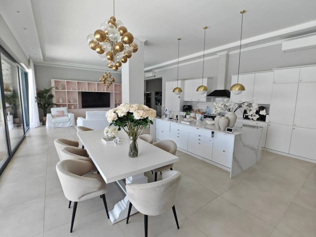 A közel 383 m²-es, két szintes lakótér tágas, fényben gazdag helyiségekkel és harmonikusan áramló terekkel fogadja az érkezőt. A nappali, az étkező és a prémium minőségben felszerelt, modern konyha egyetlen nagyvonalú élettérré olvad össze, amely közvetlen kapcsolatban áll a teraszokkal és a kerttel, így a beltéri és kültéri életterek szinte észrevétlenül kapcsolódnak össze. Így ideális teret alkotva a mindennapokhoz, családi együttlétekhez és elegáns vendéglátáshoz egyaránt. Az öt hálószoba mindegyike saját fürdőszobával rendelkezik, biztosítva a maximális kényelmet és privát szférát, miközben a több, külön bejárattal kialakított lakrész rugalmas használatot tesz lehetővé – vendégek, home office vagy akár többgenerációs együttélés számára is.